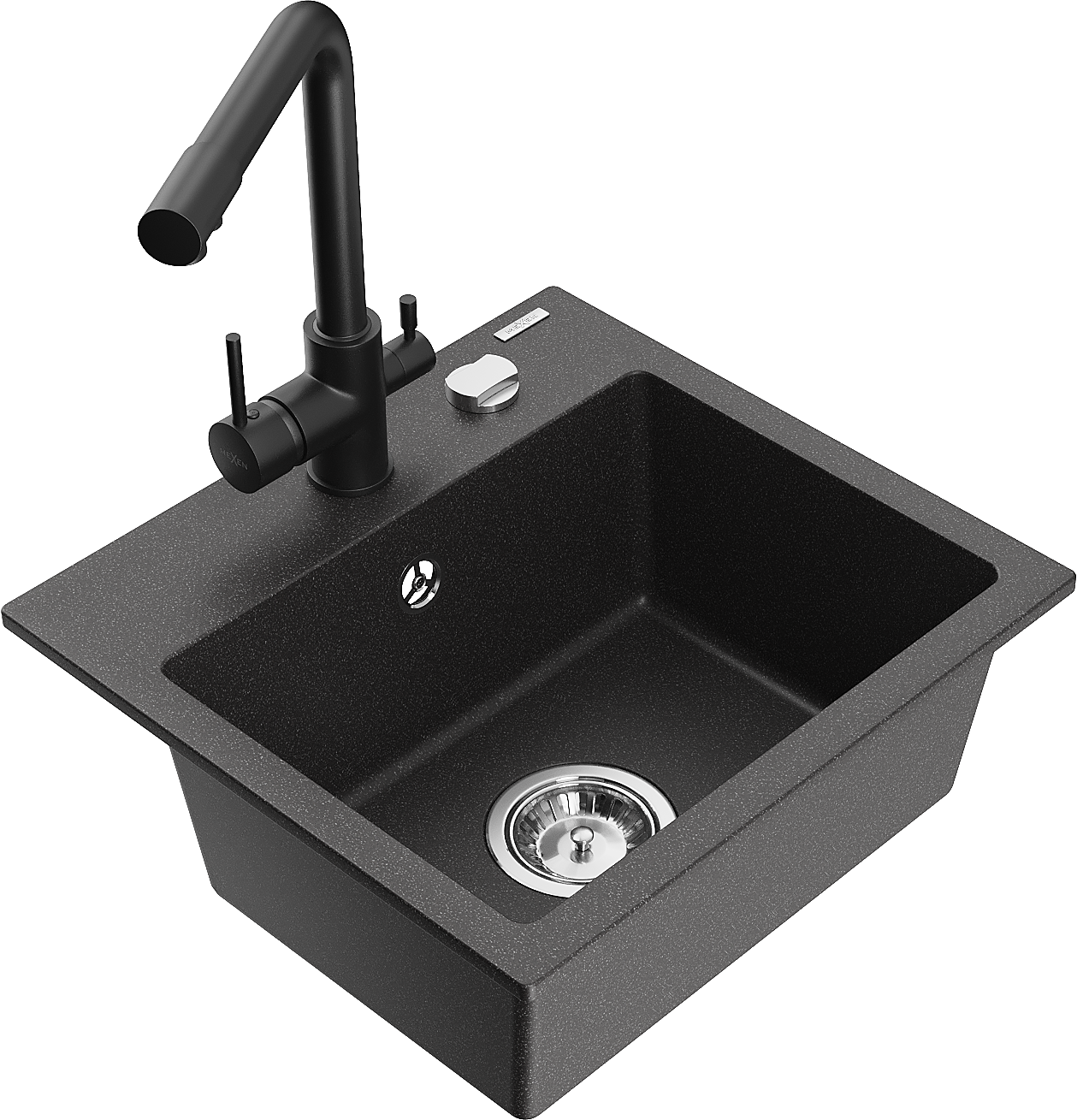 Mexen Milo chiuvetă de bucătărie din granit cu 1 compartiment cu baterie Duero, negru cu pete - 6505-76-671600-70
