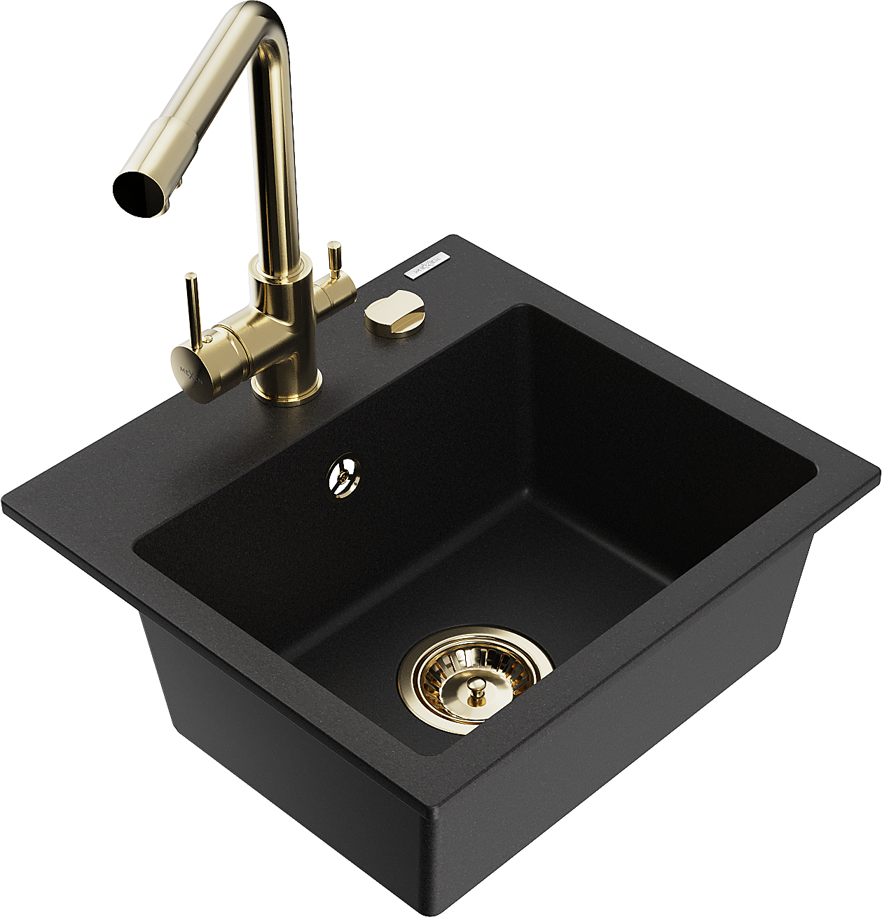 Mexen Milo chiuvetă de bucătărie din granit cu 1 compartiment cu baterie Duero, negru - 6505-77-671600-50