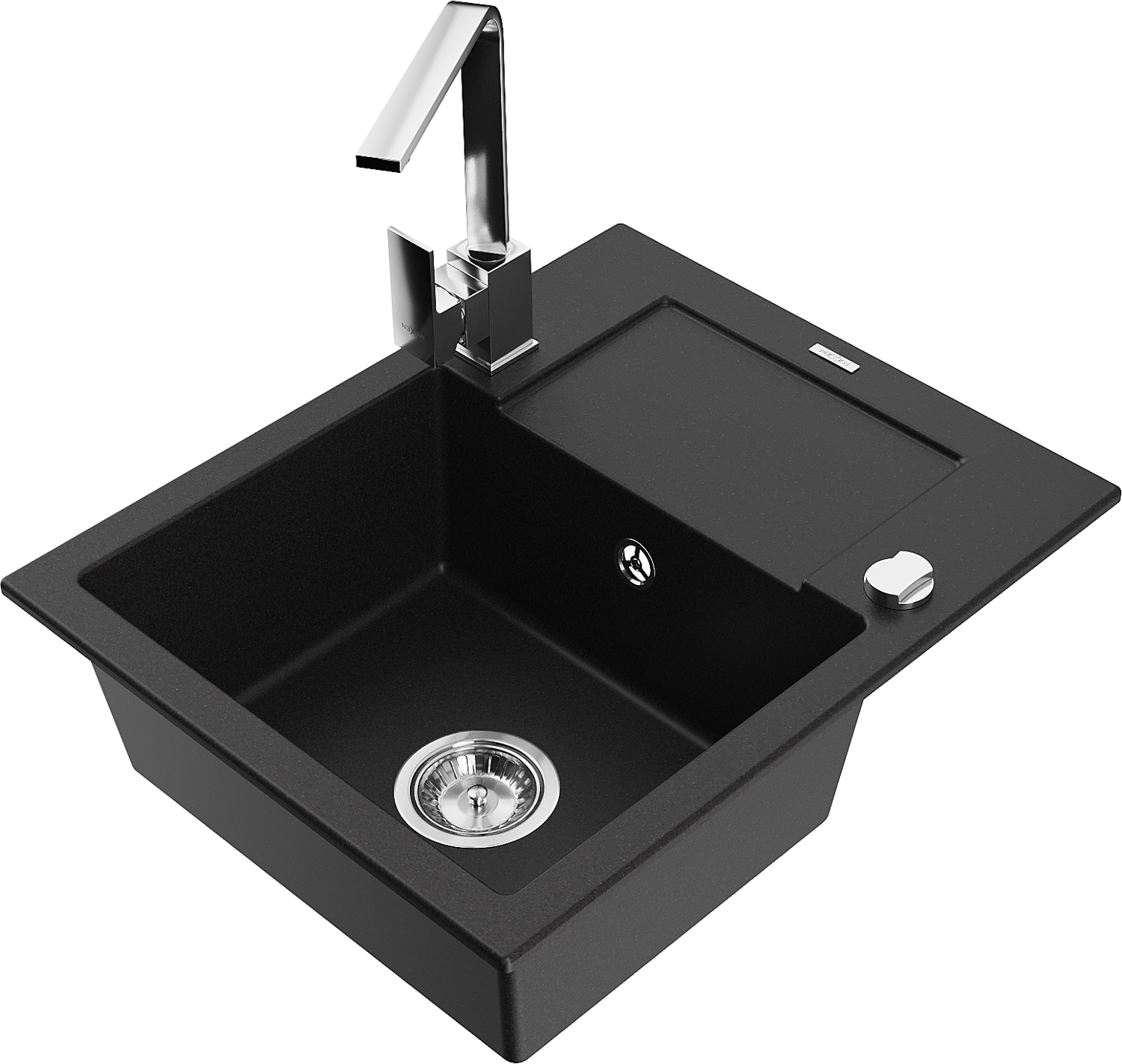 Mexen Enzo chiuvetă de granit cu 1 cuvă și scurgător și baterie de bucătărie Rita, negru - 6506-77-670300-00