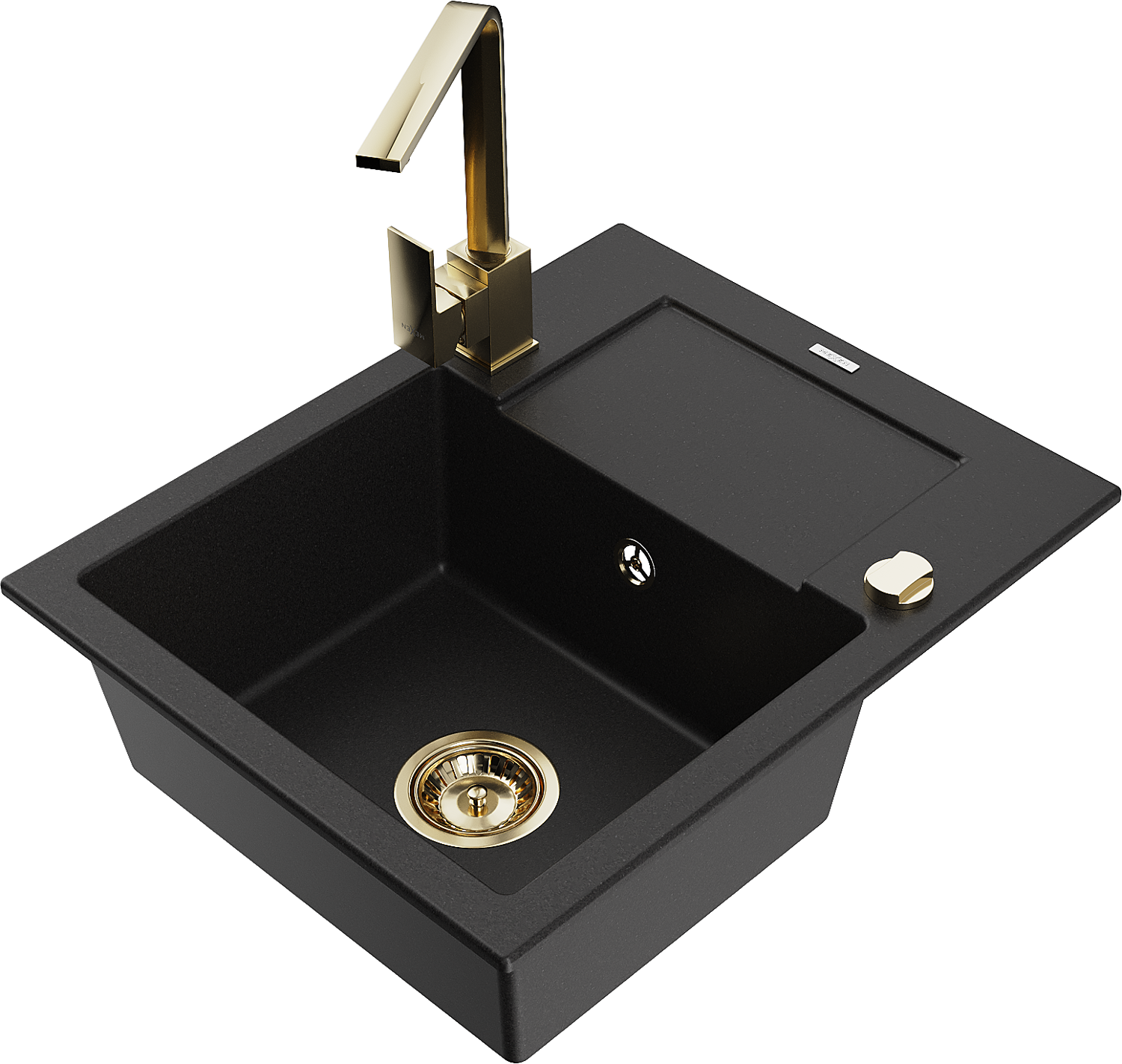 Mexen Enzo chiuvetă de bucătărie din granit cu 1 cuvă și scurgător și baterie de bucătărie Rita, negru - 6506-77-670300-50