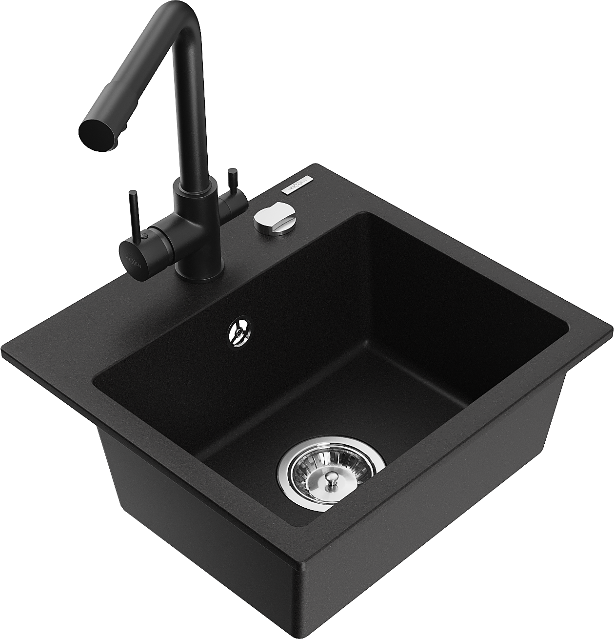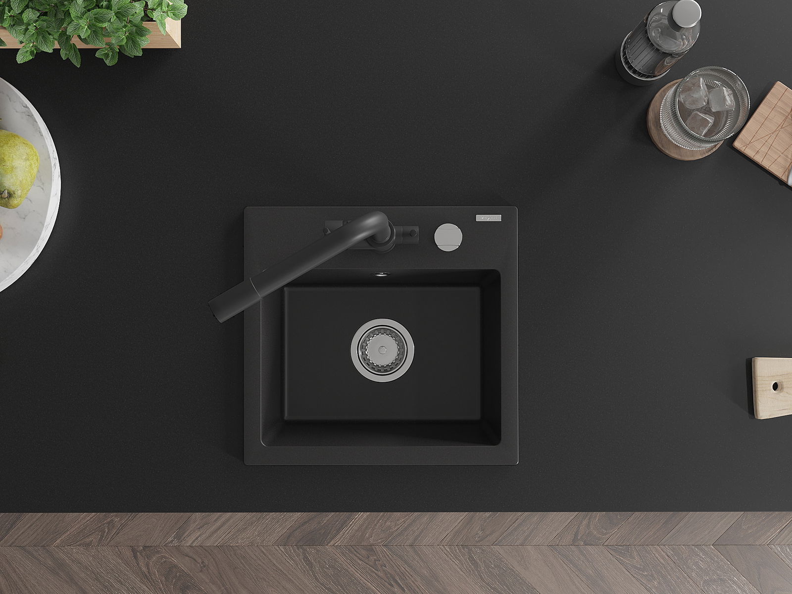 Mexen Milo chiuvetă de granit 1-cameră cu baterie de bucătărie Duero, negru - 6505-77-671600-70