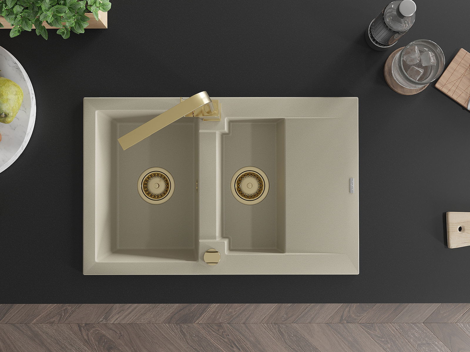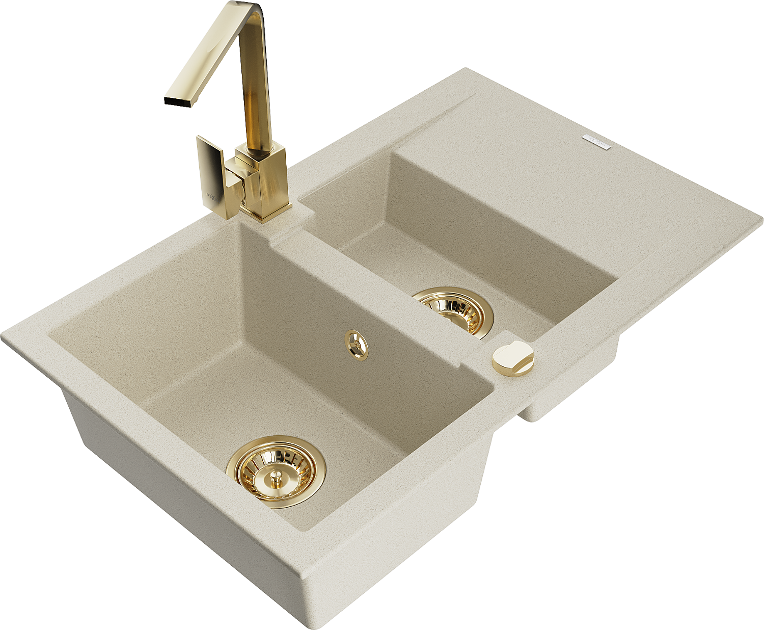 Mexen Gaspar chiuvetă de granit cu 1,5 compartimente cu scurgător și baterie de bucătărie Rita, bej - 6507-69-670300-50