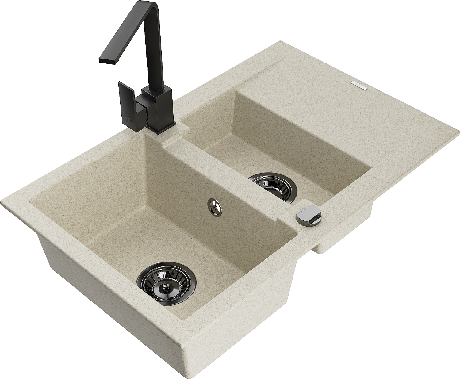 Mexen Gaspar chiuvetă de bucătărie din granit cu 1,5 camere cu scurgător și baterie de bucătărie Rita, bej - 6507-69-670300-70