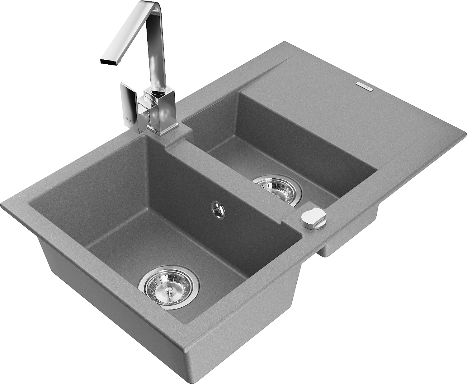 Mexen Gaspar chiuvetă de bucătărie din granit cu 1,5 compartimente, cu scurgător și baterie de bucătărie Rita, gri - 6507-71-67?