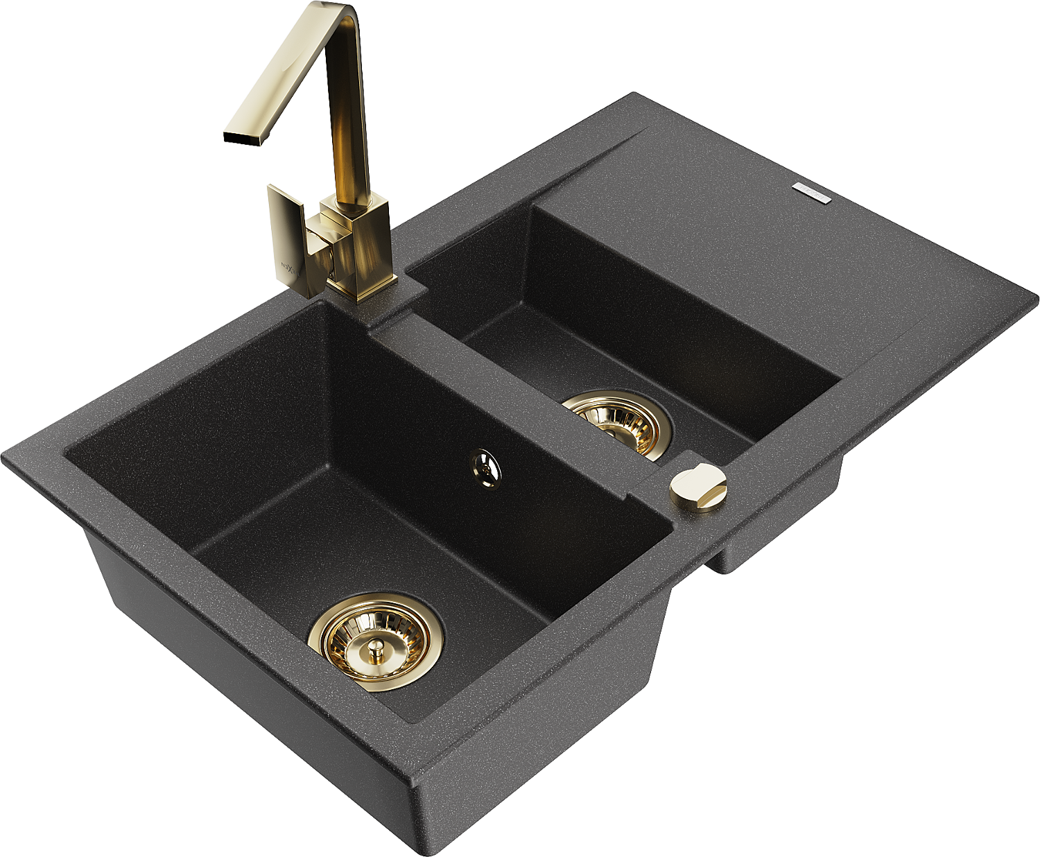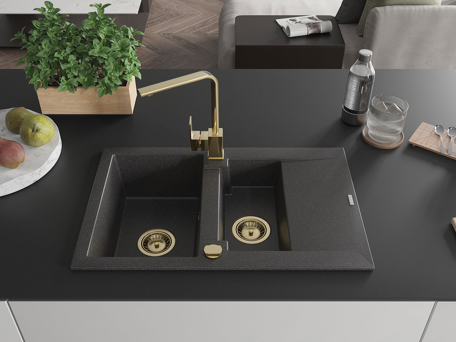 Mexen Gaspar chiuvetă granit 1,5-cameră cu scurgător și baterie de bucătărie Rita, negru pătat - 6507-76-670300-50