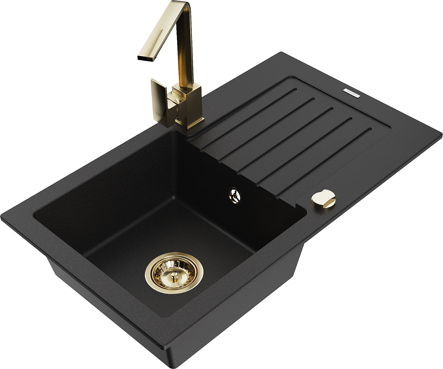 Mexen Pablo chiuvetă de granit cu 1 compartiment și scurgător și baterie de bucătărie Rita, negru - 6510-77-670300-50