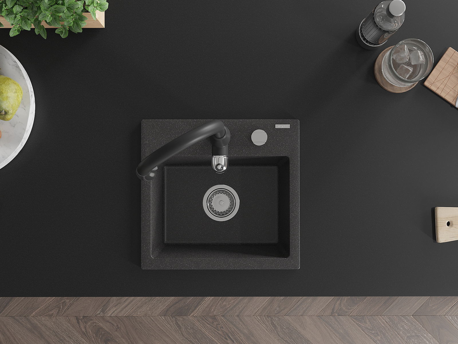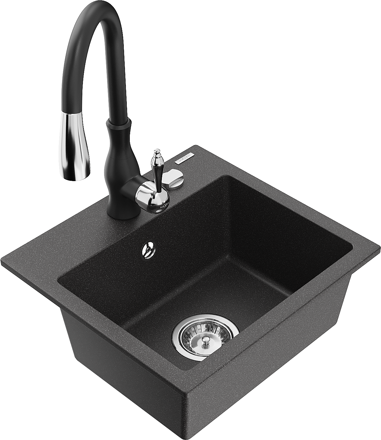 Mexen Milo chiuvetă de granit cu o singură cuvă și baterie de bucătărie Savita, negru pătat - 6505-76-672601-70