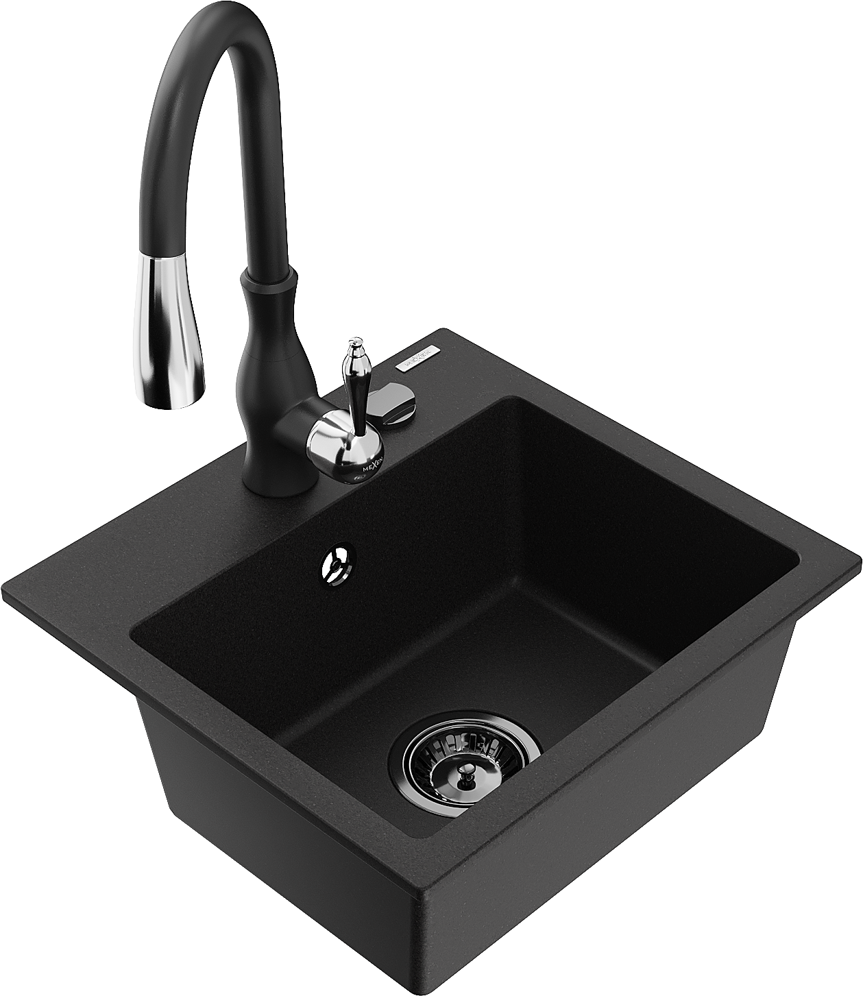 Mexen Milo chiuvetă de bucătărie din granit, 1 cuvă cu baterie de bucătărie Savita, negru - 6505-77-672601-70-B