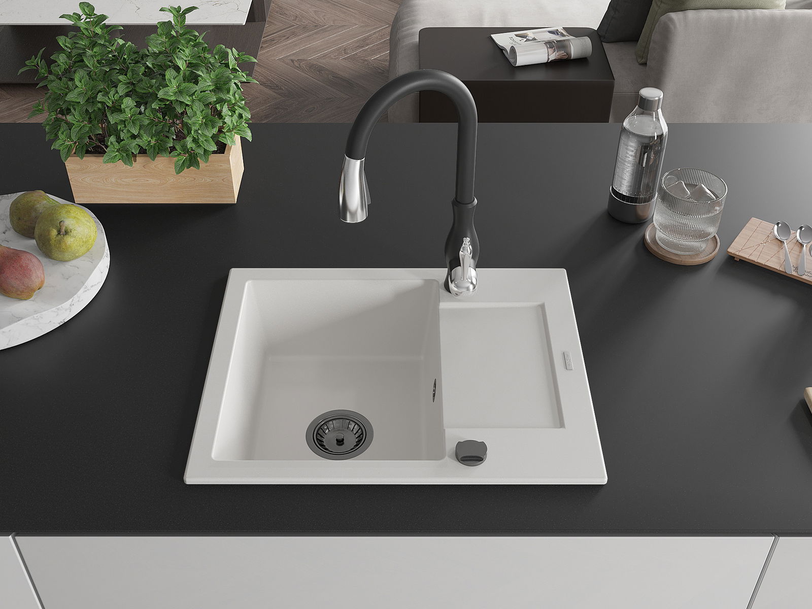 Suprafața chiuvetei este rezistentă la pete și decolorarea, datorită căreia este ușor de curățat și își păstrează culoarea mult timp. Estetică și practic completarea fiecărei bucătării.