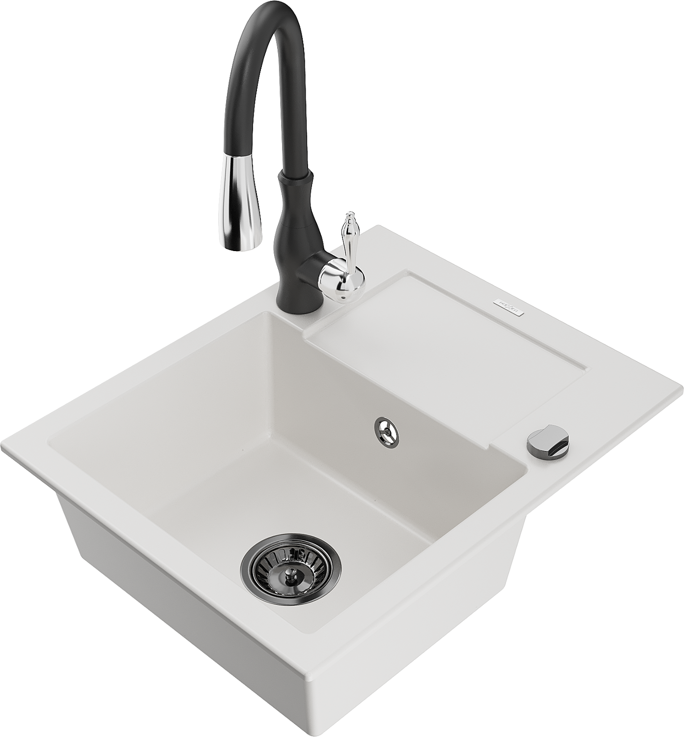 Mexen Enzo chiuvetă de granit cu 1 compartiment cu scurgător și baterie de bucătărie Savita, alb - 6506-20-672601-70