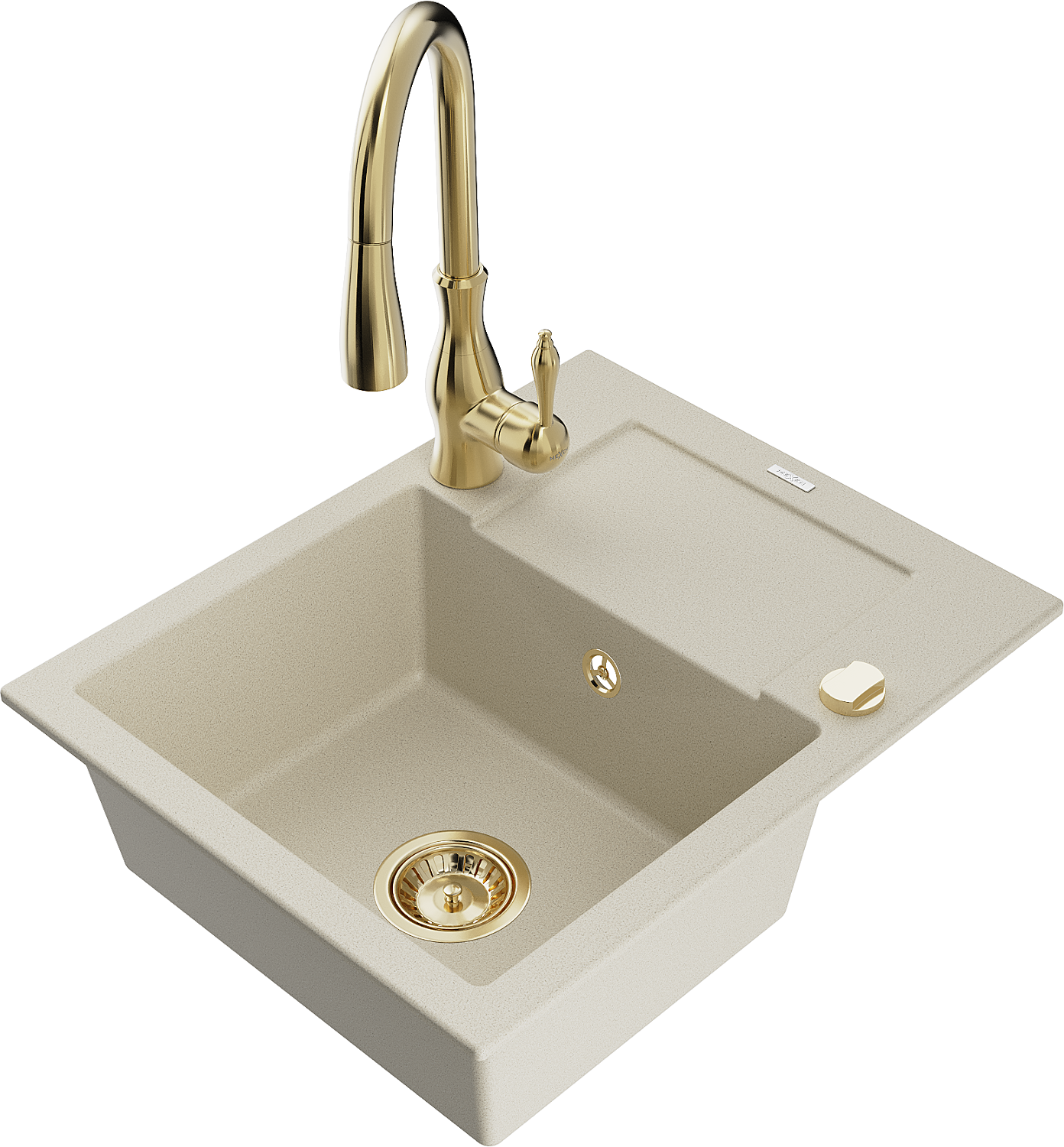 Mexen Enzo chiuvetă din granit cu 1 cuvă cu scurgător și baterie de bucătărie Savita, bej - 6506-69-672601-50
