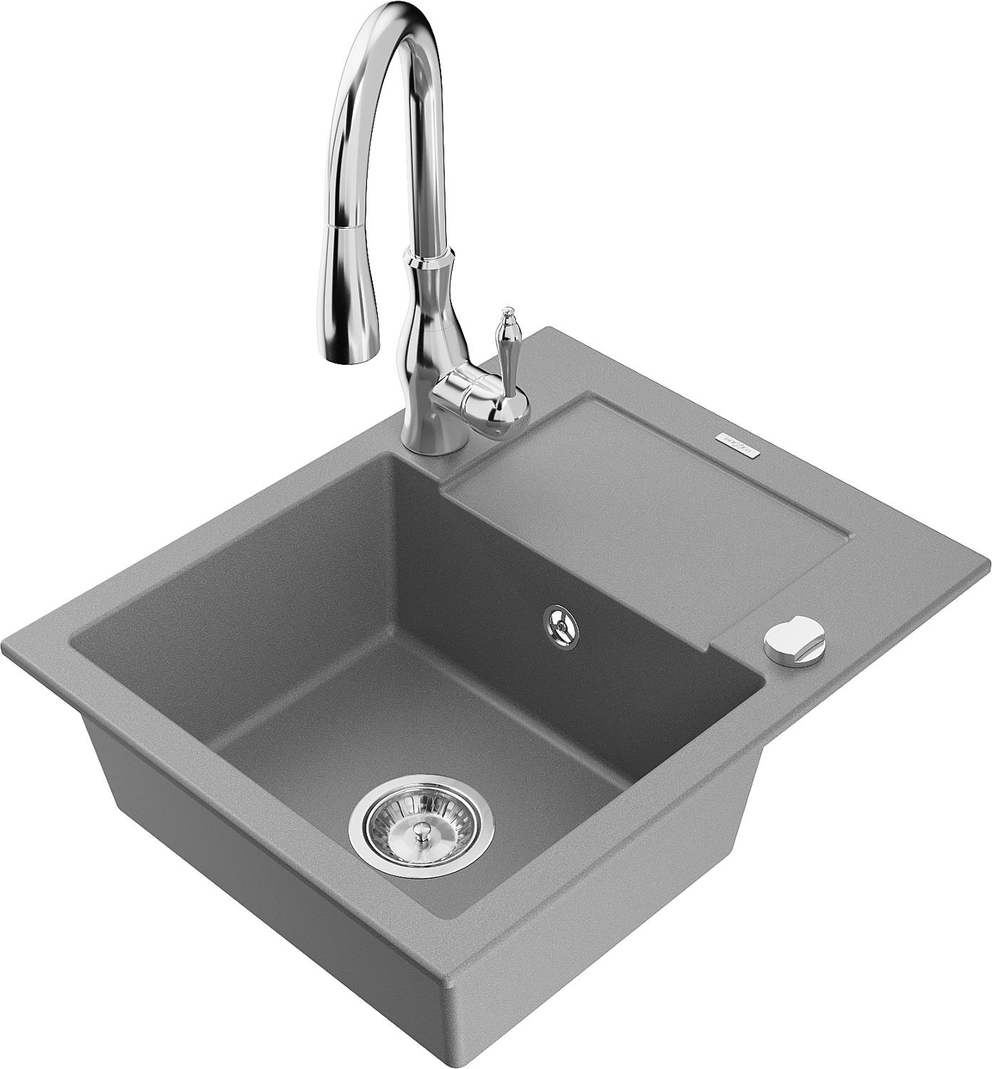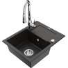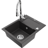 Mexen Enzo chiuvetă din granit cu 1 compartiment, cu picurător și baterie de bucătărie Savita, gri - 6506-71-672601-00