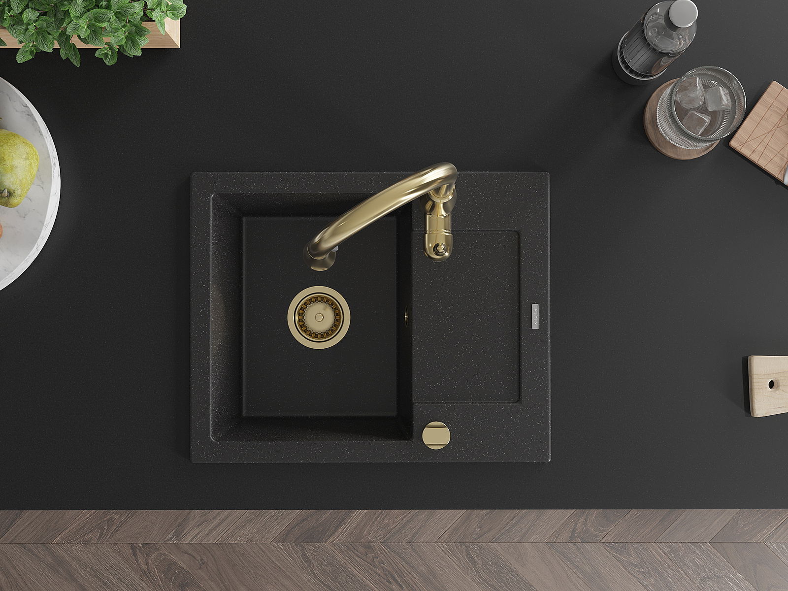 Mexen Enzo chiuvetă de bucătărie din granit cu 1 compartiment, cu scurgător și baterie de bucătărie Savita, negru/argintiu meta?