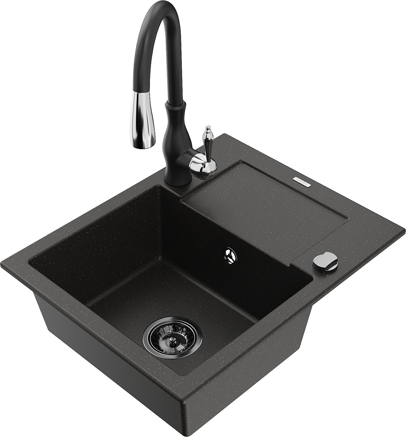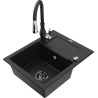 Mexen Enzo chiuvetă de bucătărie din granit cu 1 compartiment cu scurgător și baterie de bucătărie Savita, negru/auriu