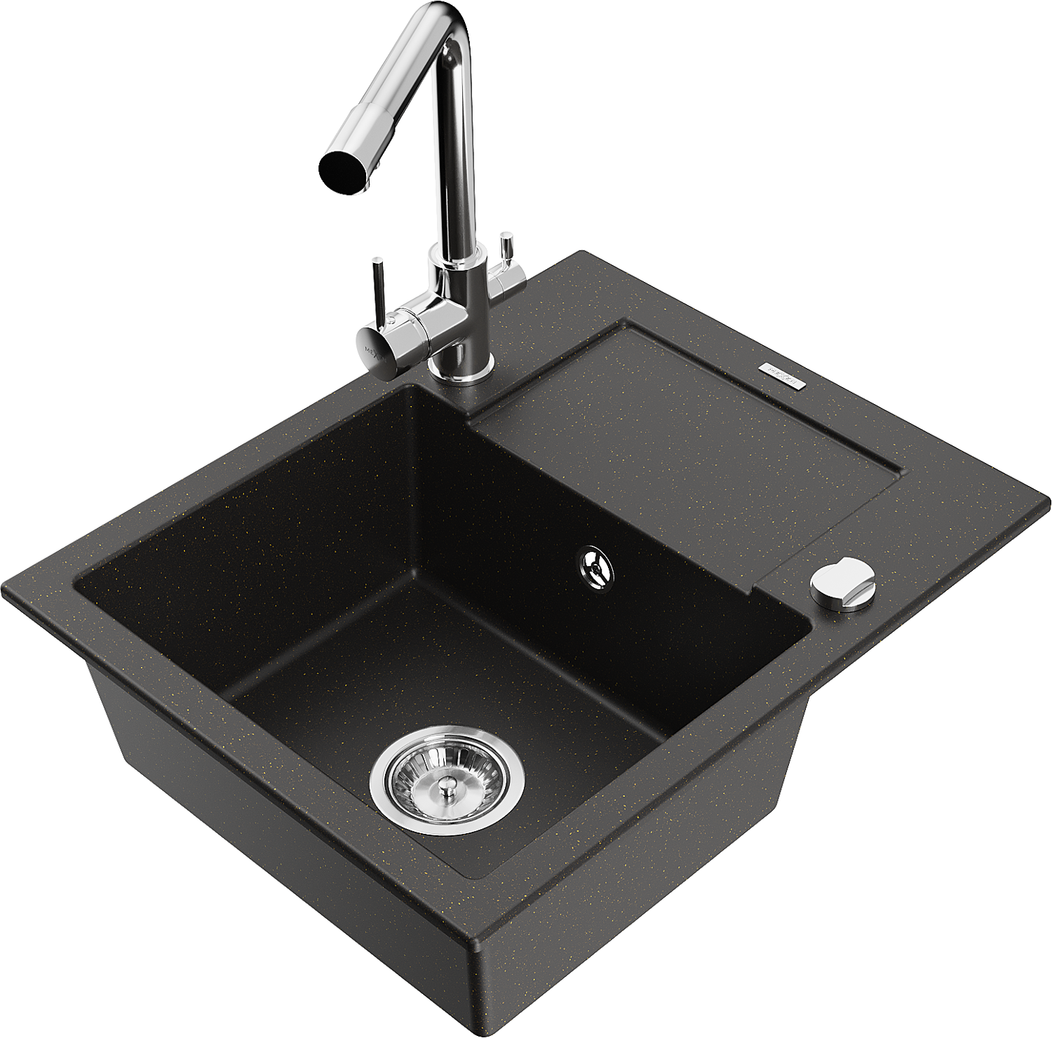 Mexen Enzo chiuvetă de granit cu 1 compartiment, cu scurgător și baterie de bucătărie Duero, negru/auriu metalic