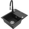 Mexen Enzo chiuvetă granit 1-cuptor cu picurător și baterie de bucătărie Savita, negru pătat - 6506-76-672601-76