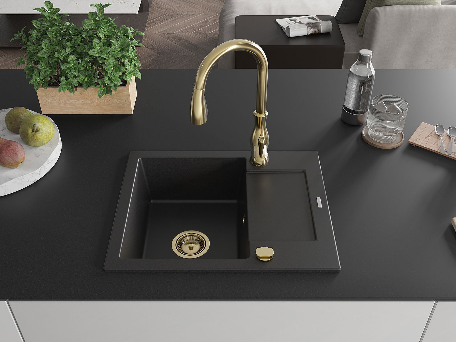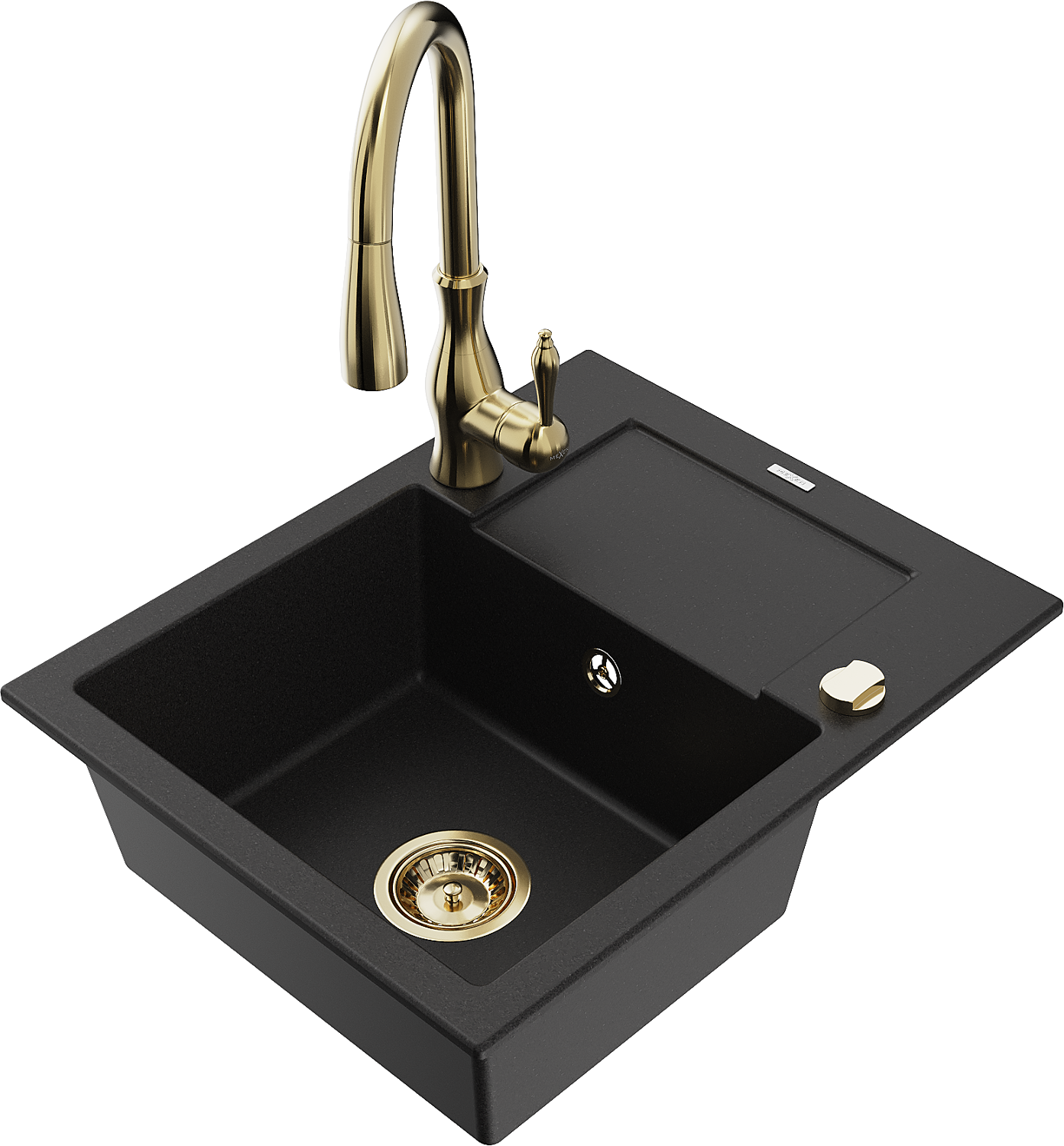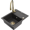 Mexen Enzo chiuvetă de granit cu 1 compartiment cu scurgător și baterie de bucătărie Savita, negru - 6506-77-672601-50