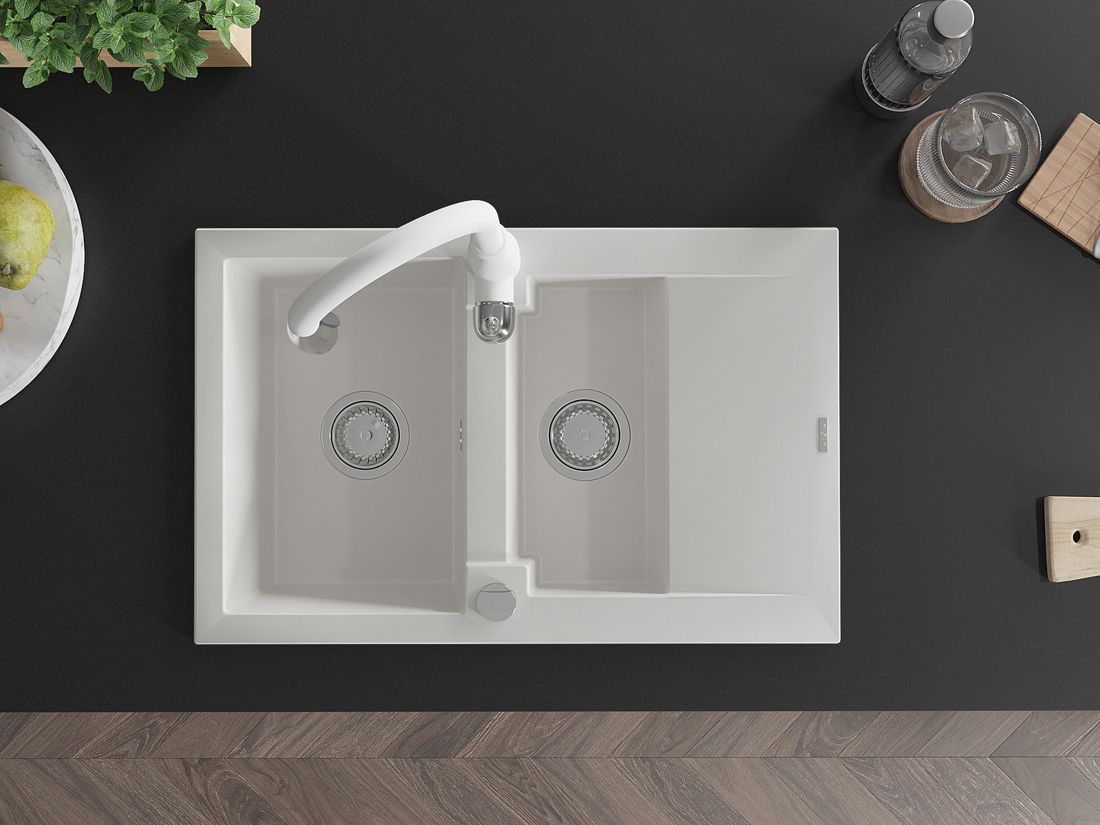 Suprafața chiuvetei este rezistentă la pete și decolorarea, datorită căreia este ușor de curățat și își păstrează culoarea mult timp. Estetică și practic completarea fiecărei bucătării.