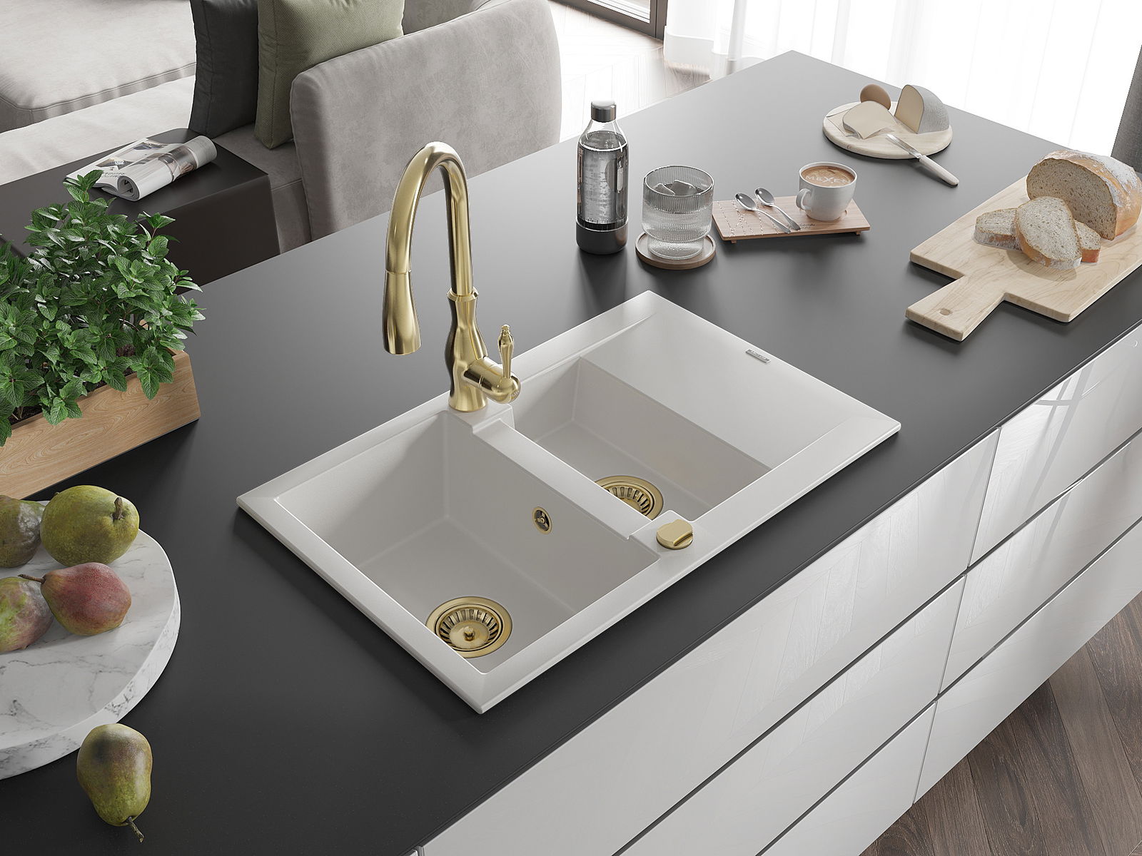 Suprafața chiuvetei este rezistentă la pete și decolorarea, datorită căreia este ușor de curățat și își păstrează culoarea mult timp. Estetică și practic completarea fiecărei bucătării.