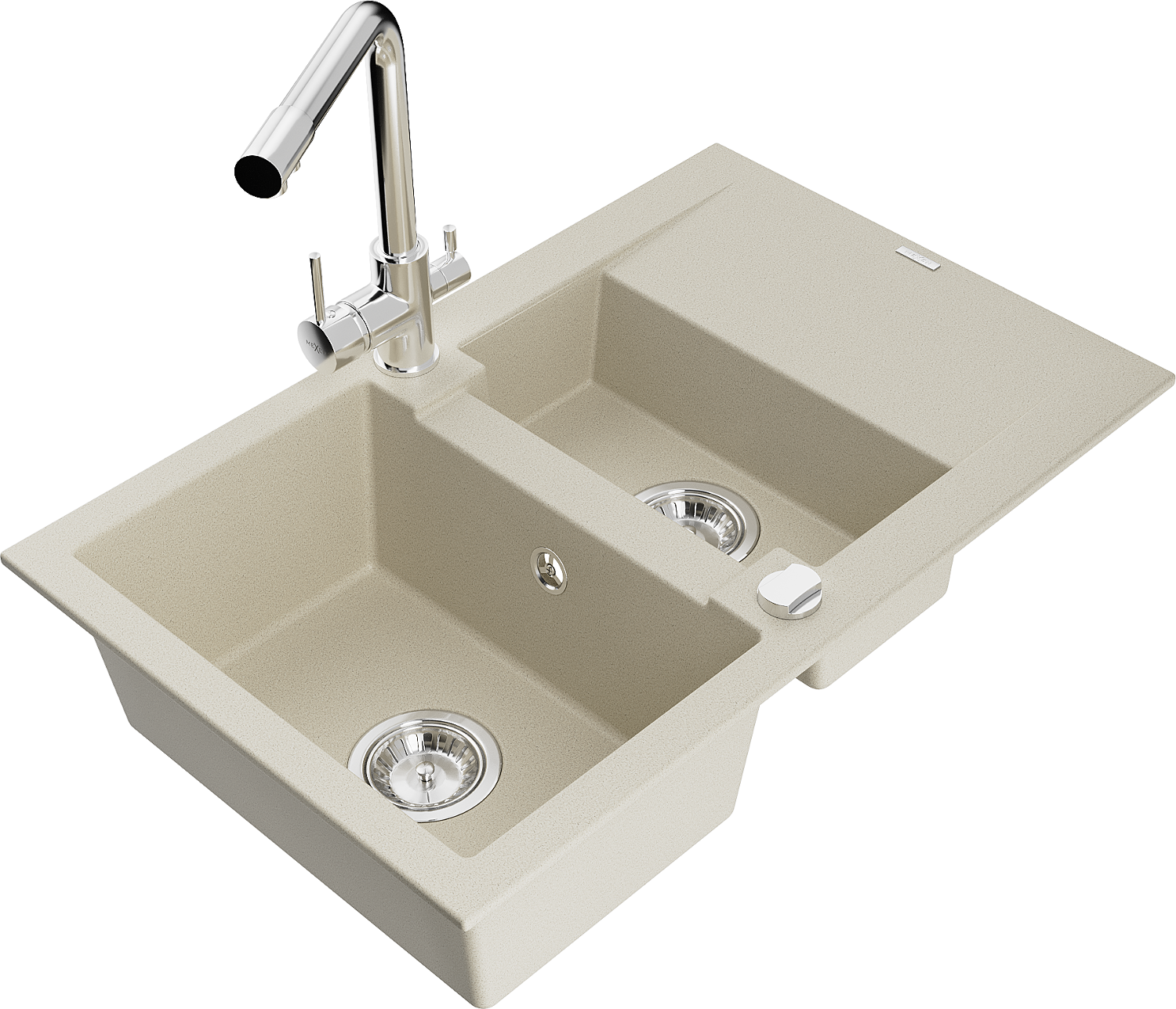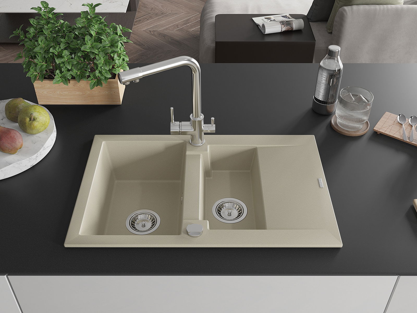 Suprafața chiuvetei este rezistentă la pete și decolorarea, datorită căreia este ușor de curățat și își păstrează culoarea mult timp. Estetică și practic completarea fiecărei bucătării.
