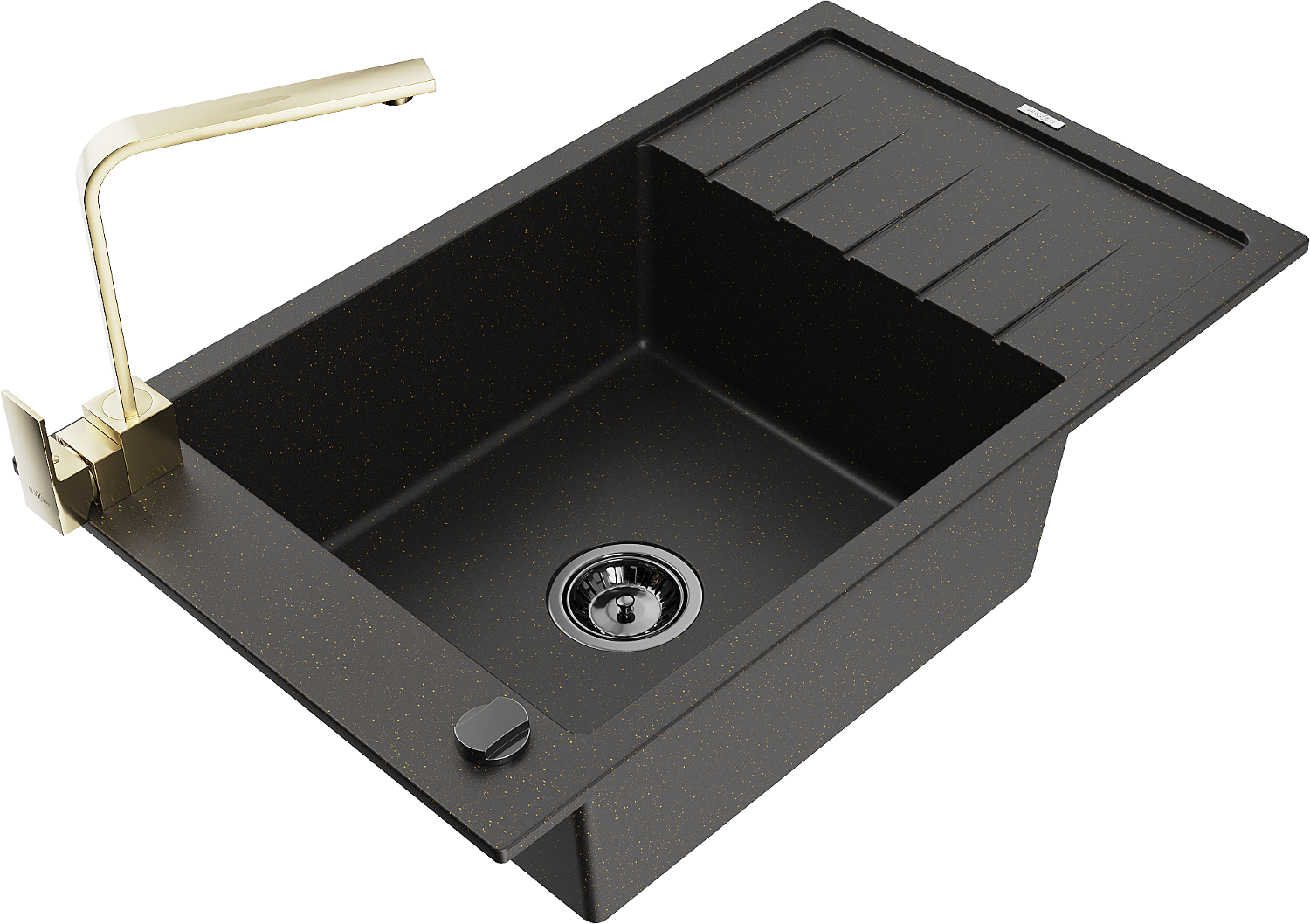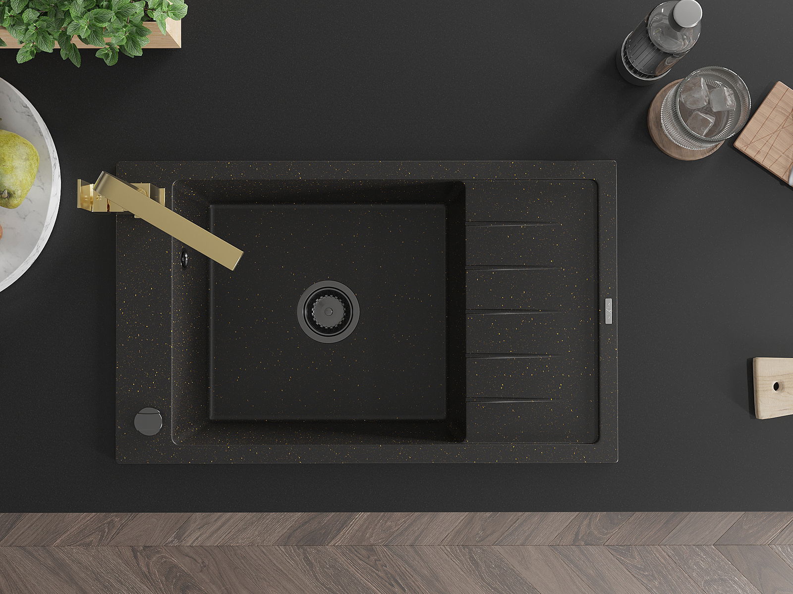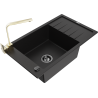 Mexen Elias chiuvetă granit 1-cameră cu scurgător și baterie de bucătărie Rita, negru/auriu metalic - 6511-75-670300-50-B