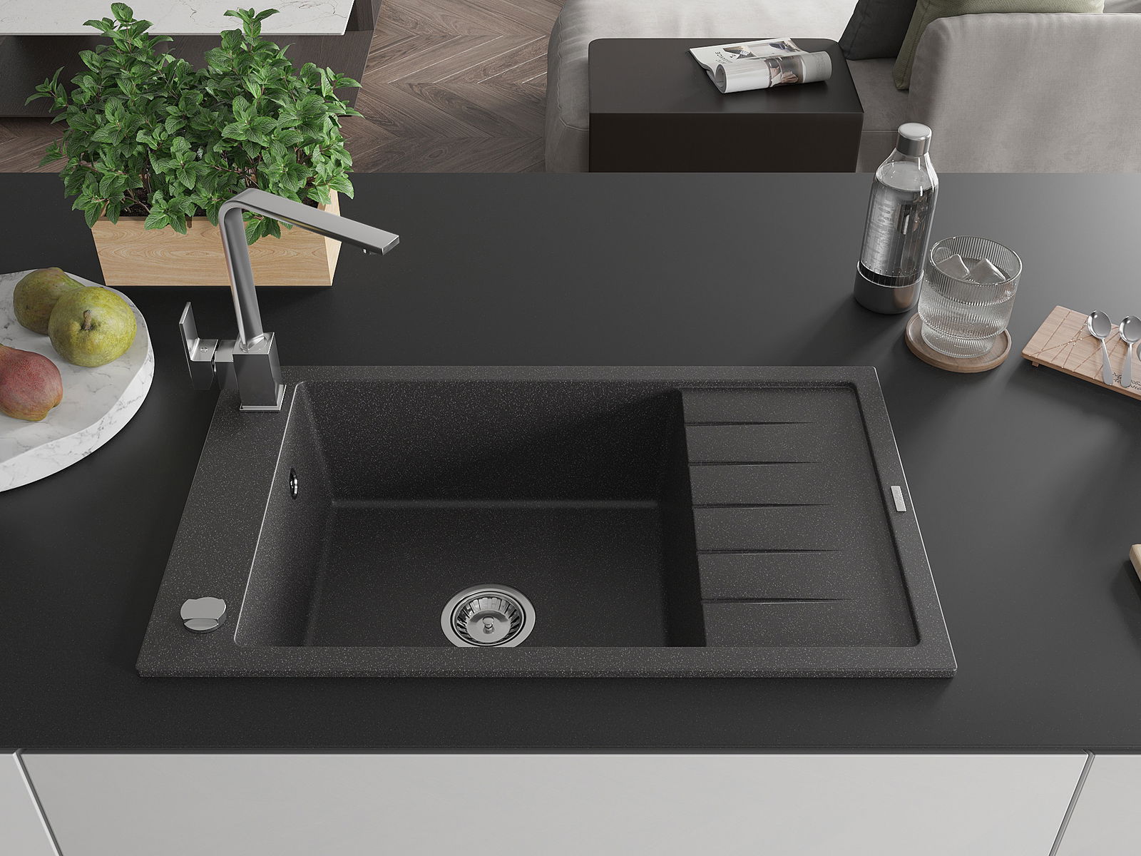Suprafața chiuvetei este rezistentă la pete și decolorarea, datorită căreia este ușor de curățat și își păstrează culoarea mult timp. Estetică și practic completarea fiecărei bucătării.