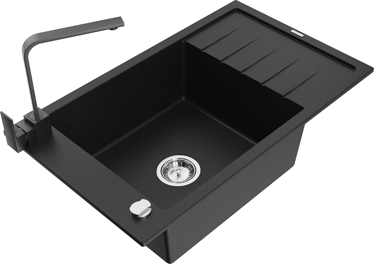 Mexen Elias chiuvetă de bucătărie din granit cu o cameră și scurgător și baterie de bucătărie Rita, negru - 6511-77-670300-70