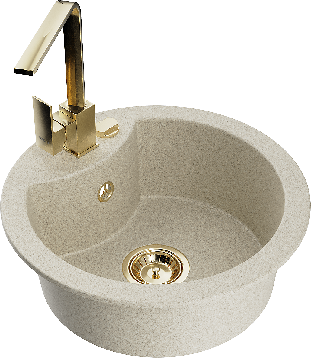 Mexen Diego chiuvetă de bucătărie din granit cu 1 compartiment și baterie de bucătărie Rita, bej - 6512-69-670300-50