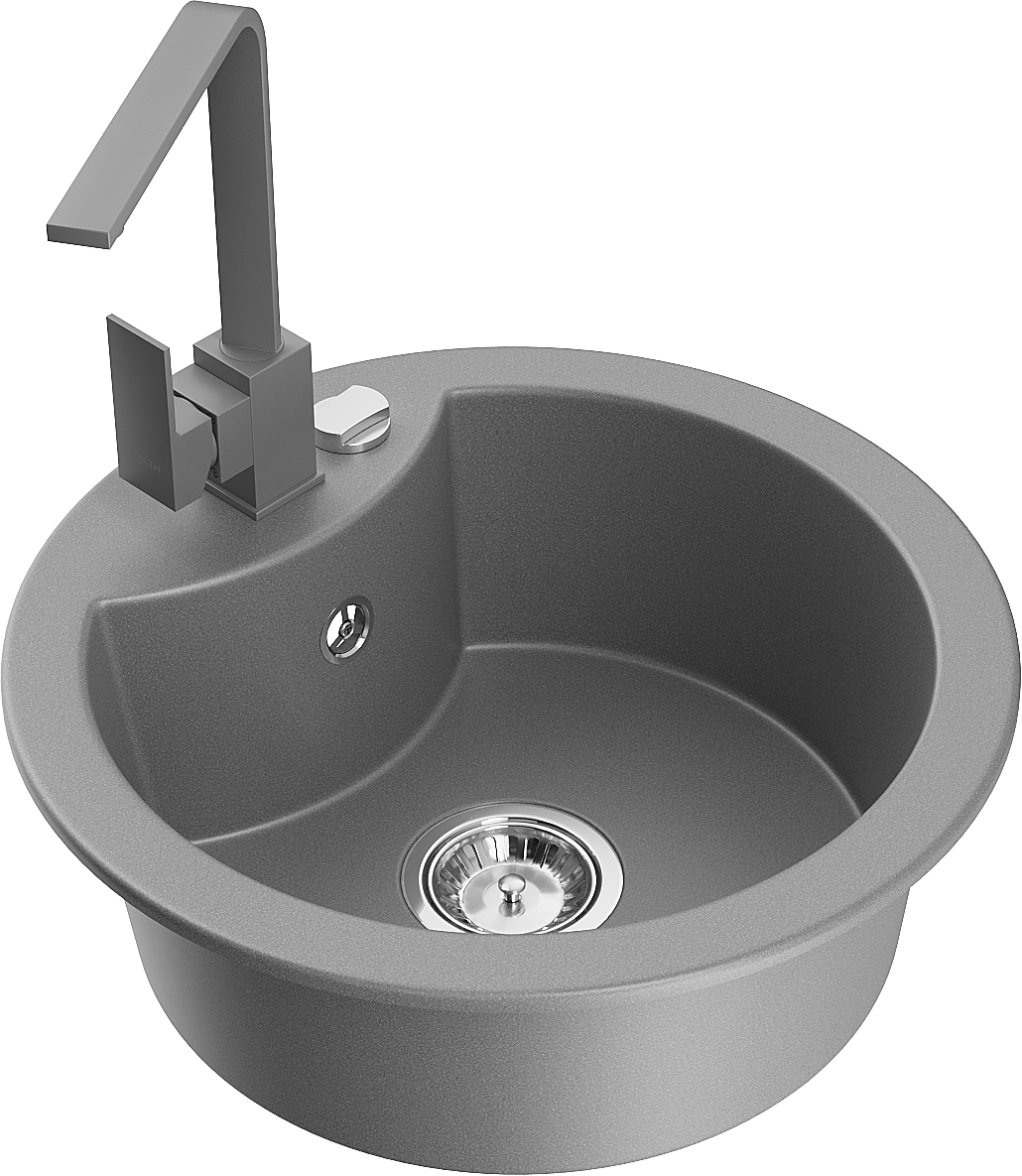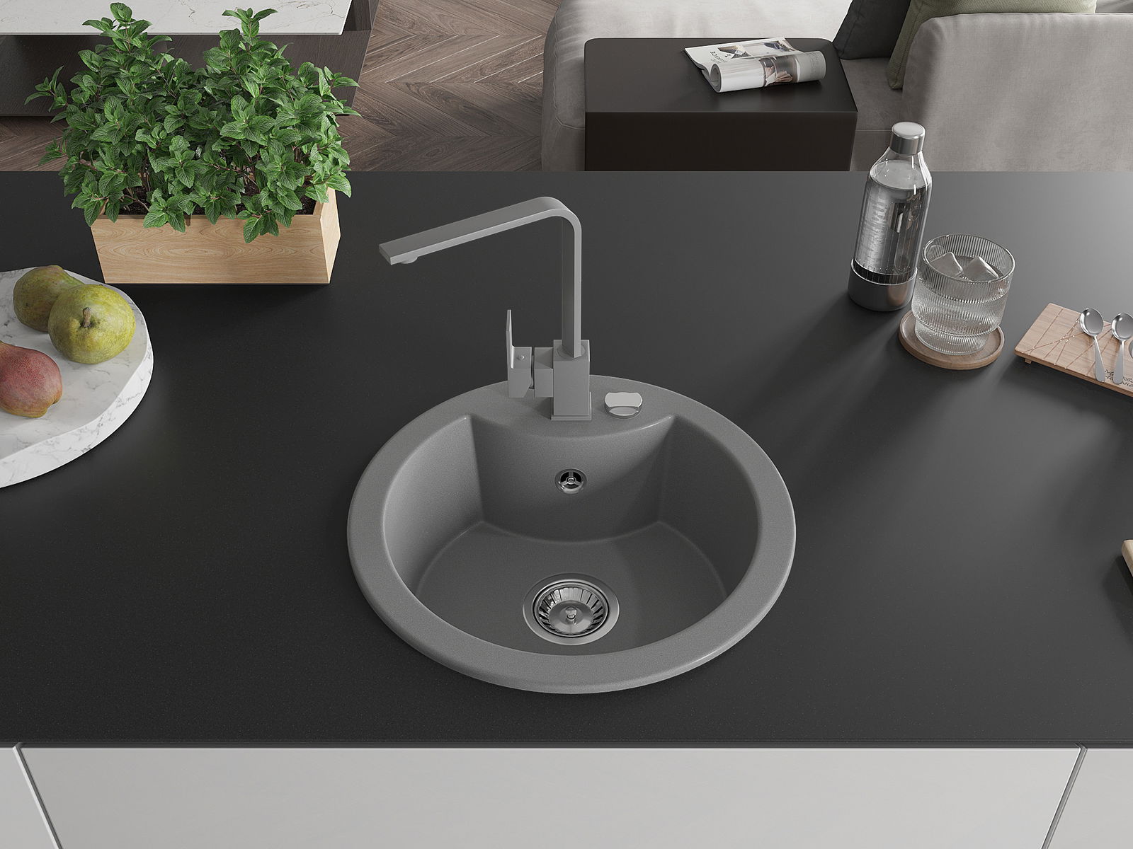 Mexen Diego chiuvetă de bucătărie din granit cu o cuvă și robinet Rita, gri - 6512-71-670300-71