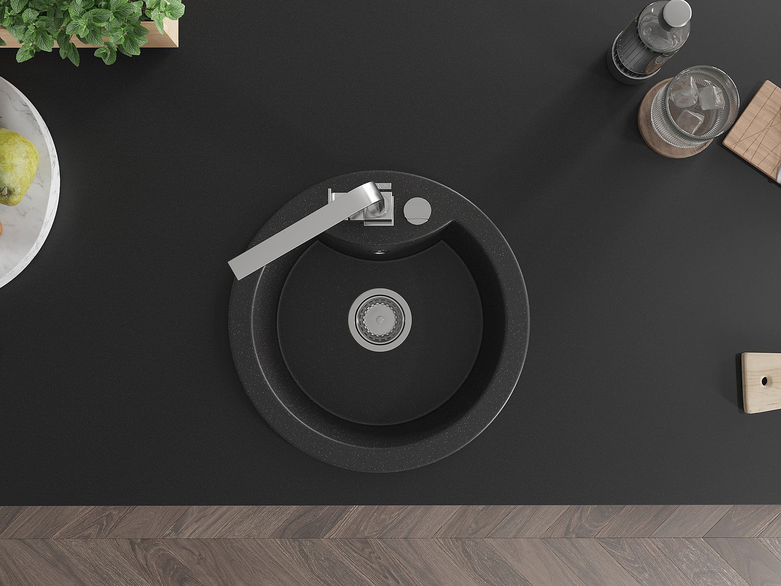 Chiuveta are o gaură prezentată cu un diametru de 35 mm pentru auto -burst. Poate fi folosit, printre altele Pentru montarea unui distribuitor de lichid care va elimina prezența sticlelor de plastic în bucătărie și îi va oferi un finisaj elegant.
