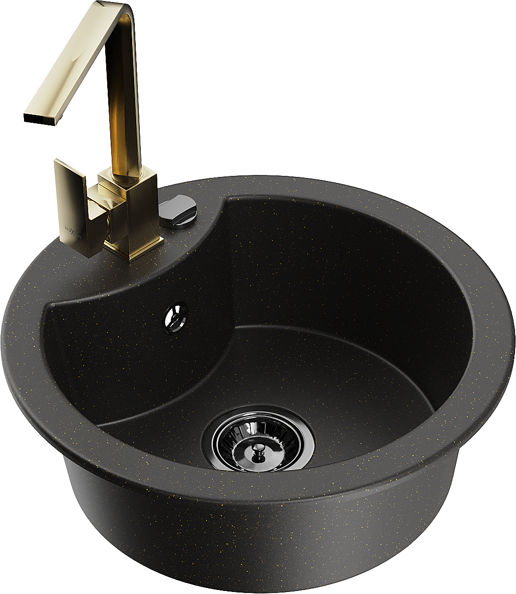 Mexen Diego chiuvetă de granit cu 1 compartiment cu baterie de bucătărie Rita, negru/auriu metalizat - 6512-75-670300-50-B