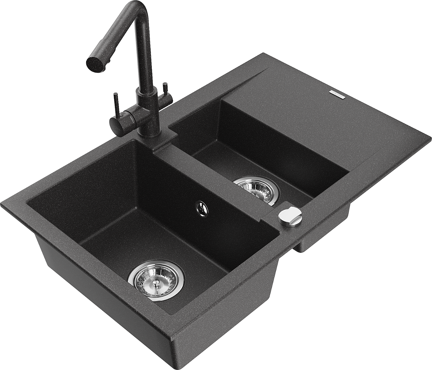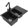 Mexen Gaspar chiuvetă din granit cu 1,5 compartimente cu uscător și baterie de bucătărie Duero, negru cu pete
