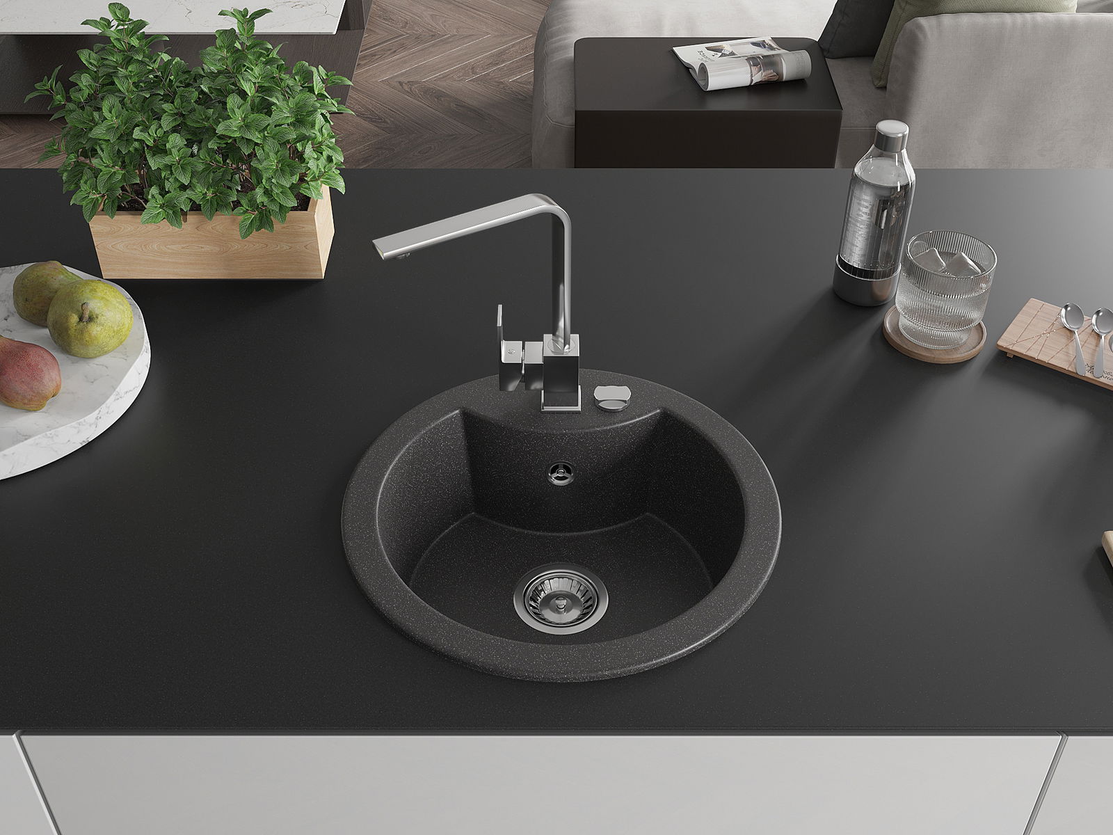 Suprafața chiuvetei este rezistentă la pete și decolorarea, datorită căreia este ușor de curățat și își păstrează culoarea mult timp. Estetică și practic completarea fiecărei bucătării.