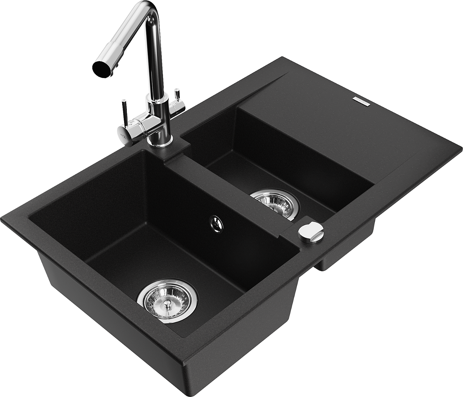 Mexen Gaspar chiuvetă de granit cu 1,5 compartimente cu scurgător și baterie de bucătărie Duero, negru - 6507-77-671600-00