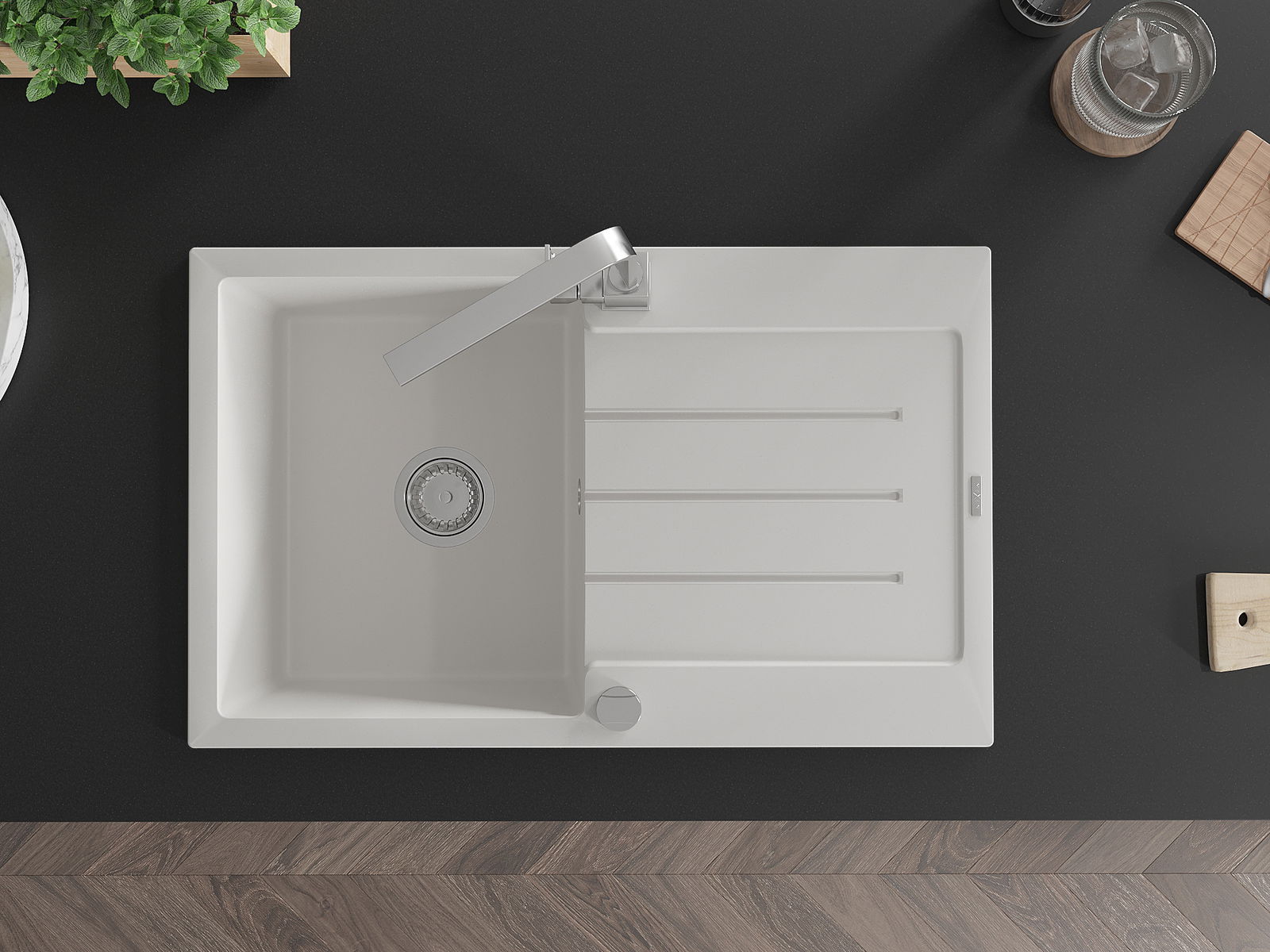 Suprafața chiuvetei este rezistentă la pete și decolorarea, datorită căreia este ușor de curățat și își păstrează culoarea mult timp. Estetică și practic completarea fiecărei bucătării.