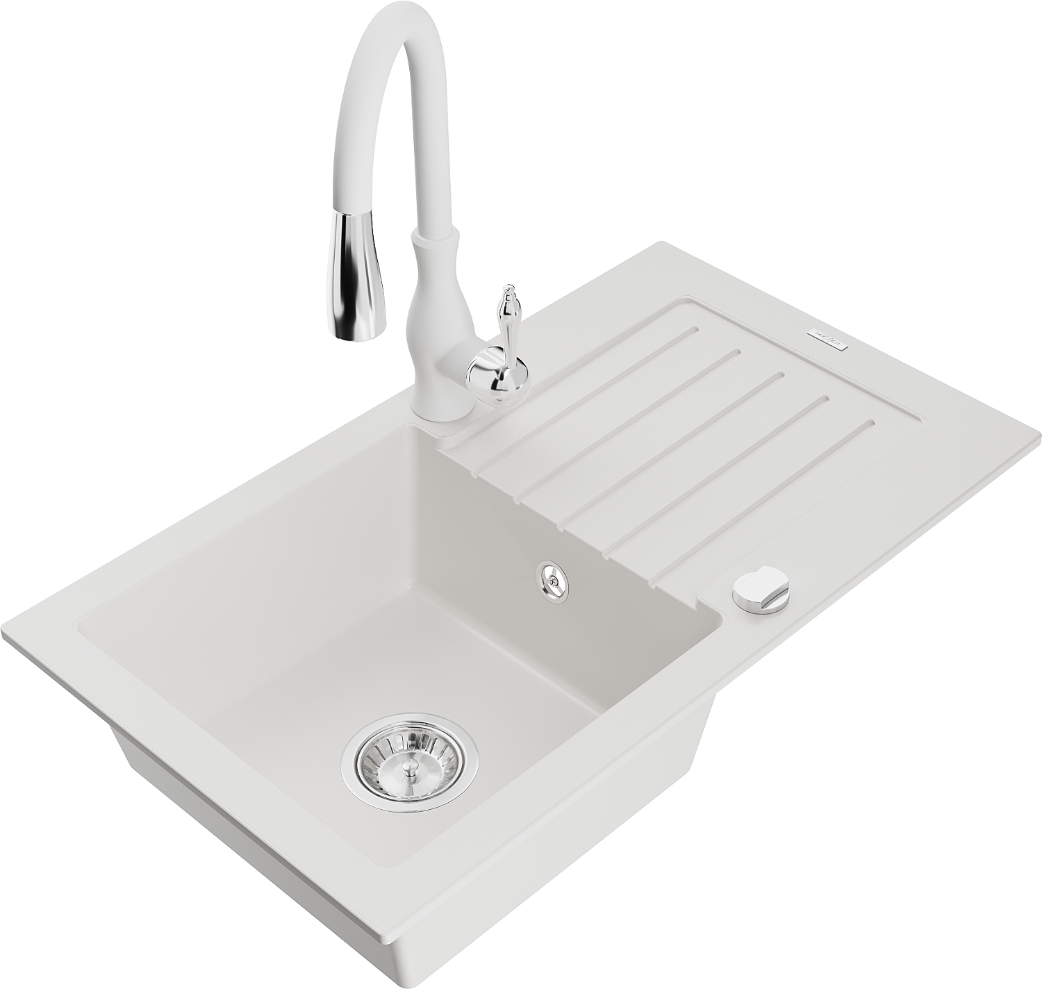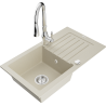 Mexen Pablo chiuvetă granitică cu 1 compartiment cu scurgător și baterie de bucătărie Savita, alb - 6510-20-672601-20