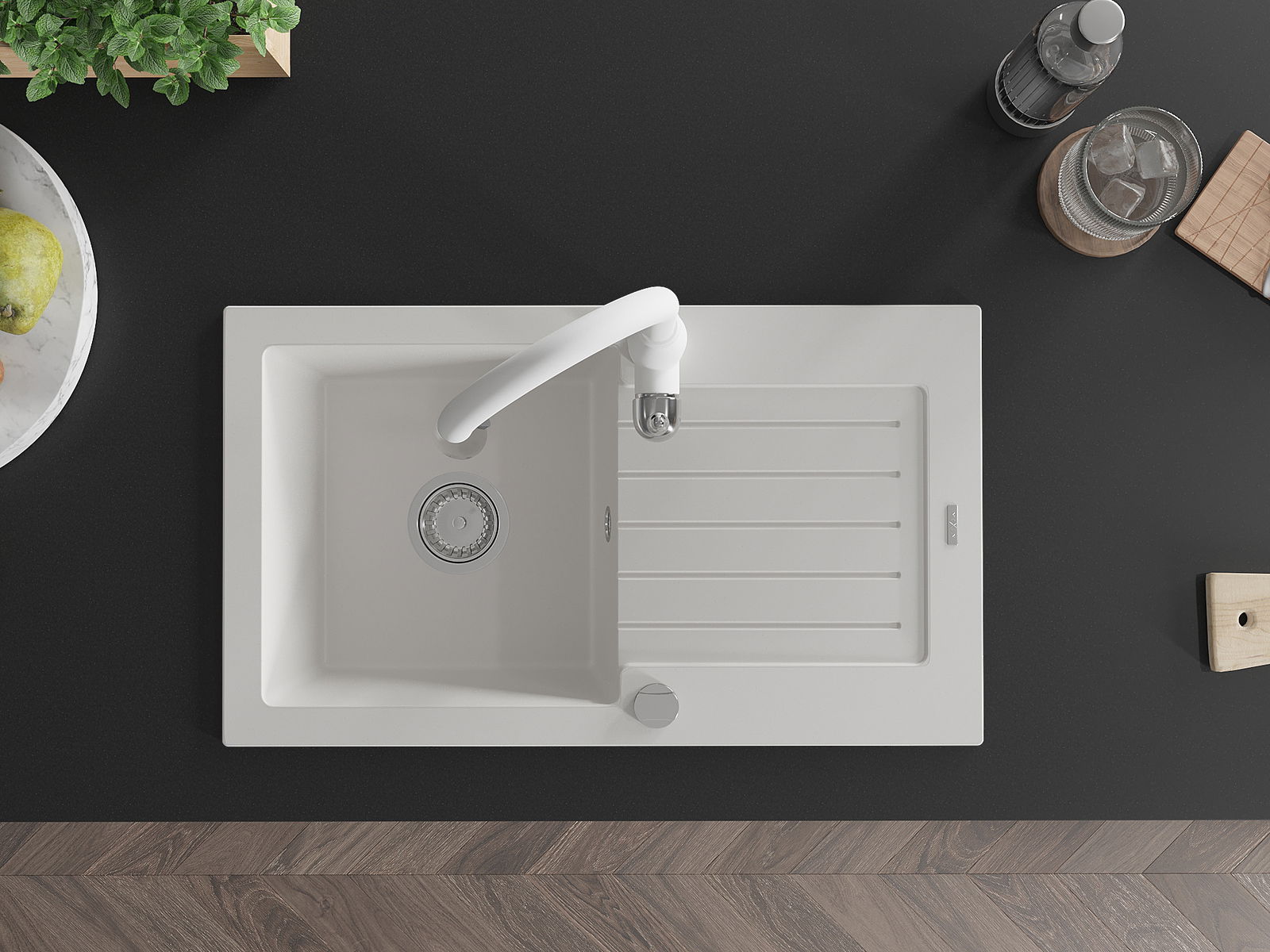 Suprafața chiuvetei este rezistentă la pete și decolorarea, datorită căreia este ușor de curățat și își păstrează culoarea mult timp. Estetică și practic completarea fiecărei bucătării.