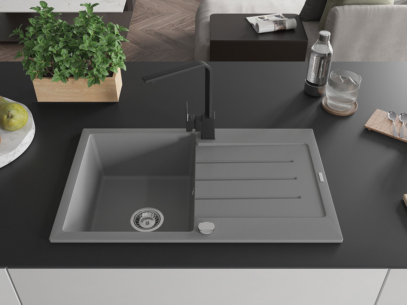 Chiuveta a fost realizată din granit de înaltă calitate. Reprezintă un complement elegant și, mai presus de toate, practic pentru orice bucătărie, indiferent de stilul acesteia. Calitatea înaltă și durabilitatea granitului asigură o utilizare de lungă durată.