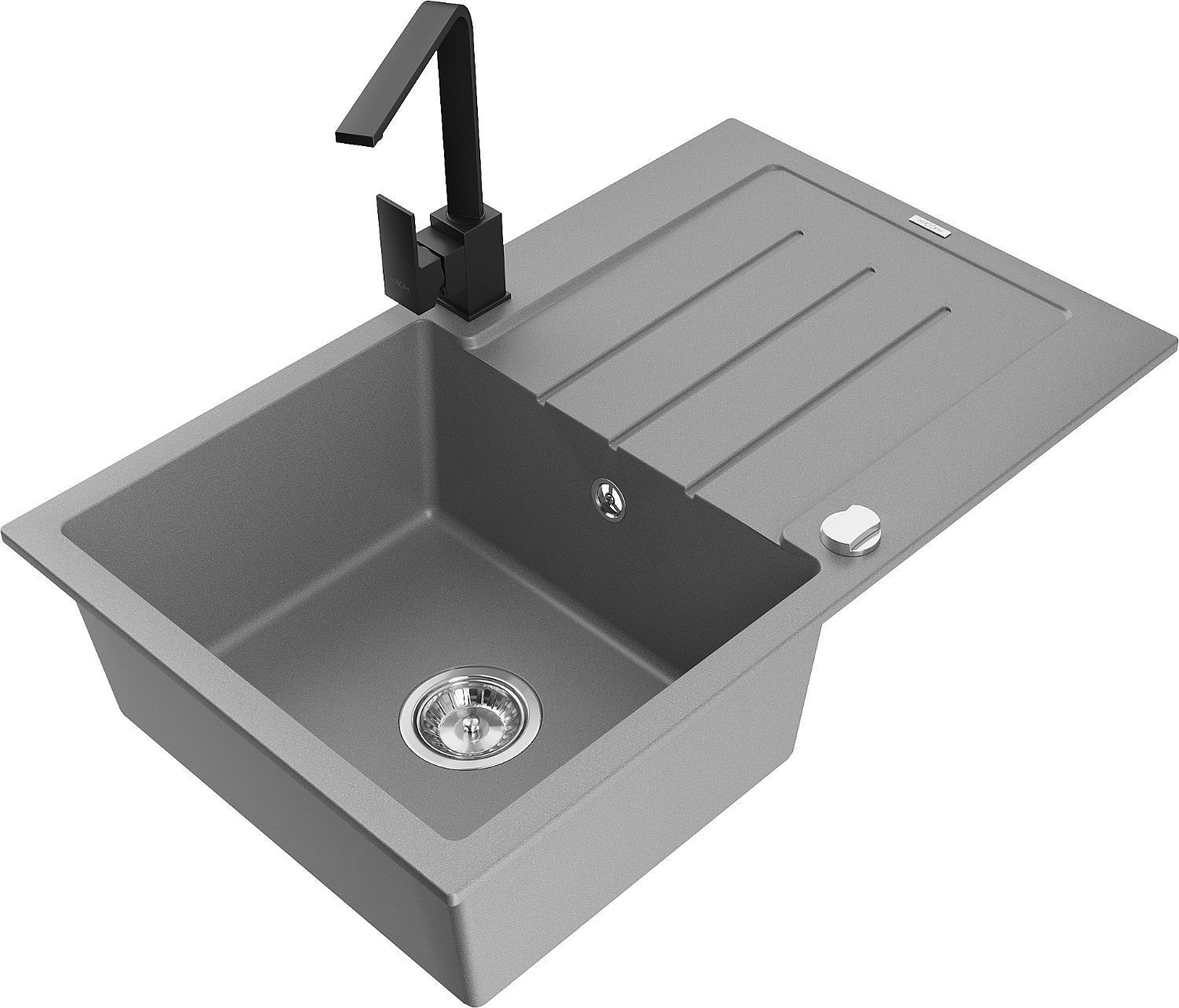 Mexen Bruno chiuvetă de granit cu o singură cuvă cu scurgător și baterie de bucătărie Rita, gri - 6513-71-670300-70
