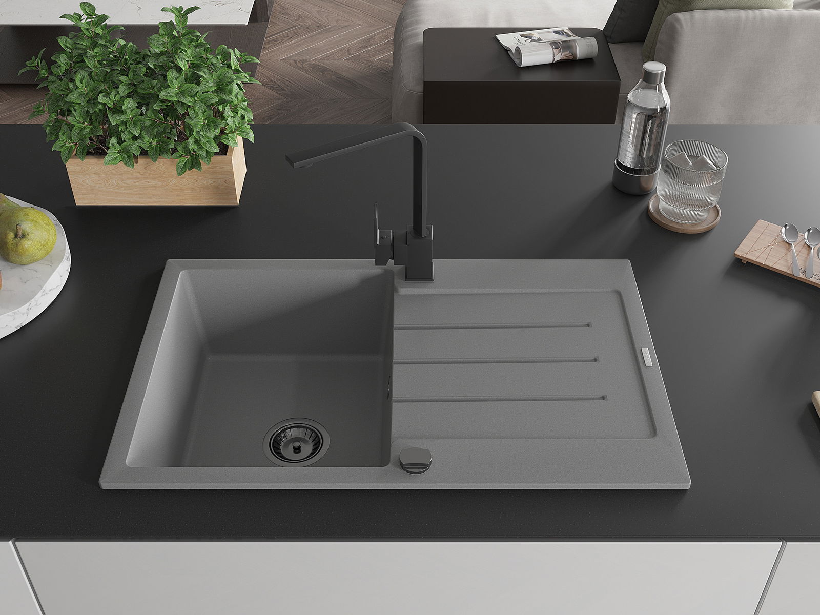 Chiuveta este confecționată din granit de înaltă calitate. Este un complement elegant și, mai ales, practic pentru fiecare bucătărie, indiferent de stilul său. Durabilitatea de înaltă calitate și granit asigură mulți ani de utilizare.