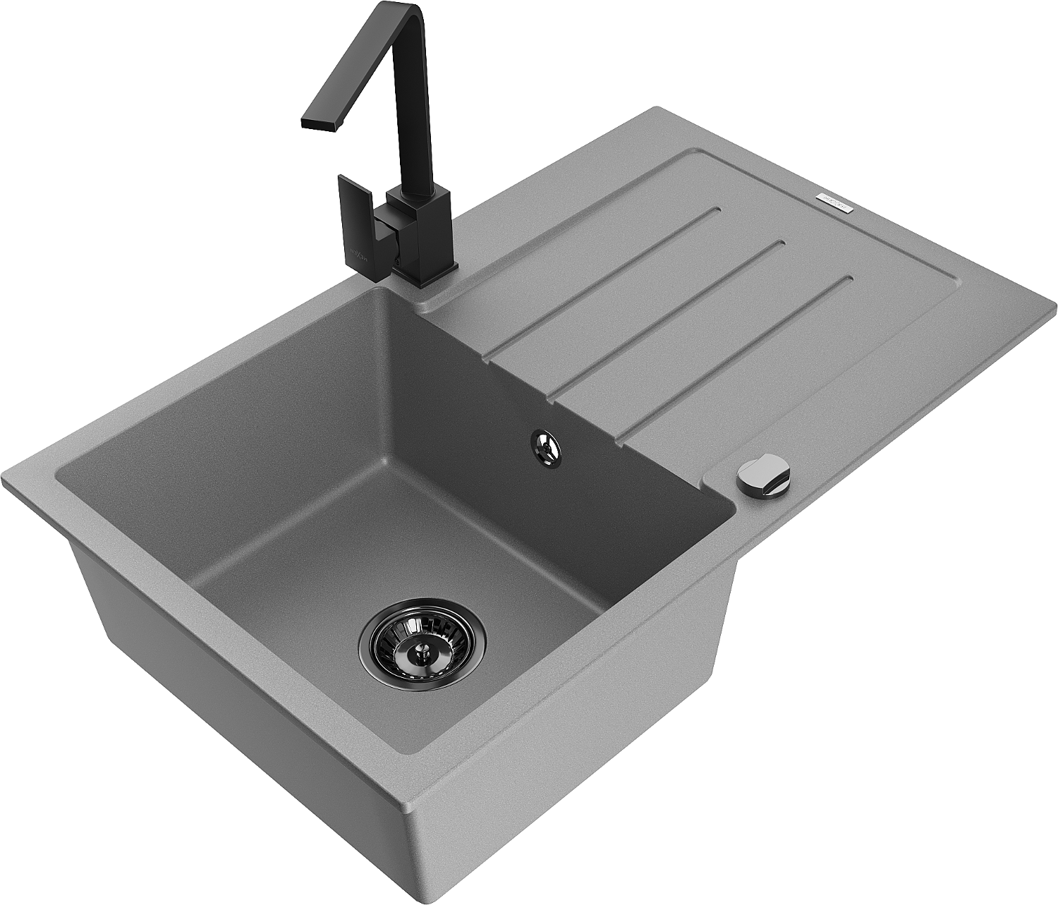 Mexen Bruno chiuvetă granit 1-cameră cu scurgător și baterie de bucătărie Rita, gri - 6513-71-670300-70-B