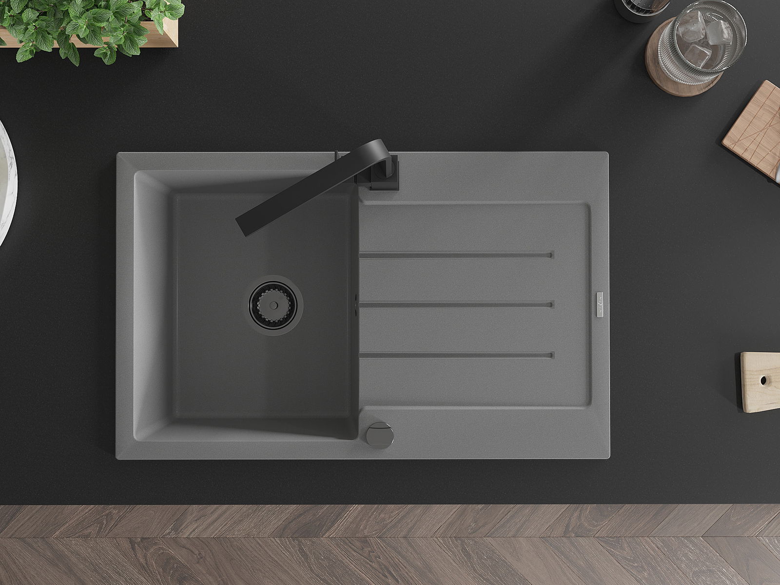 Suprafața chiuvetei este rezistentă la pete și decolorarea, datorită căreia este ușor de curățat și își păstrează culoarea mult timp. Estetică și practic completarea fiecărei bucătării.