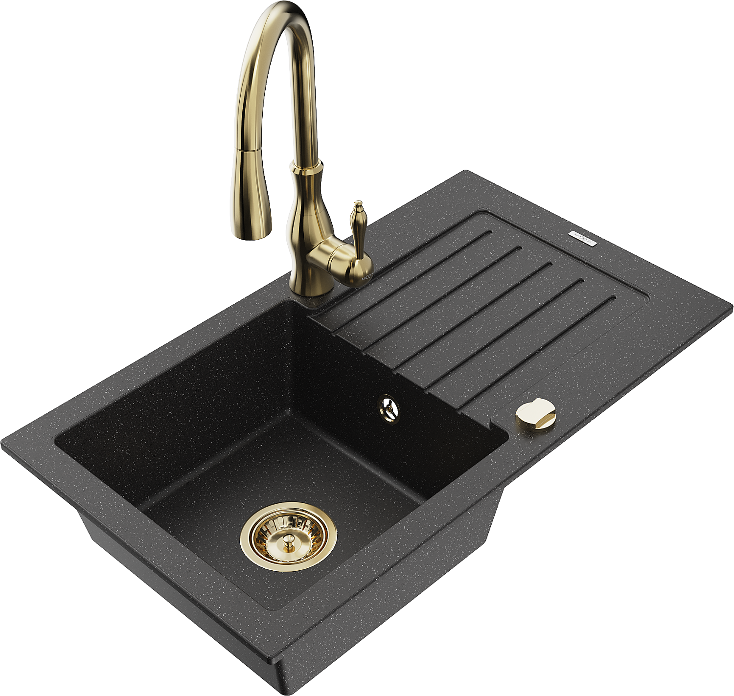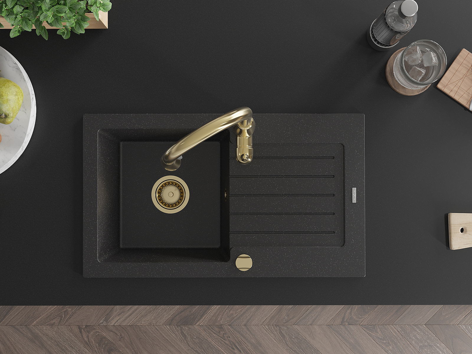 Mexen Pablo chiuvetă granit 1-cameră cu picurător și robinet de bucătărie Savita, negru/argintiu metalic - 6510-73-672601-50