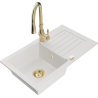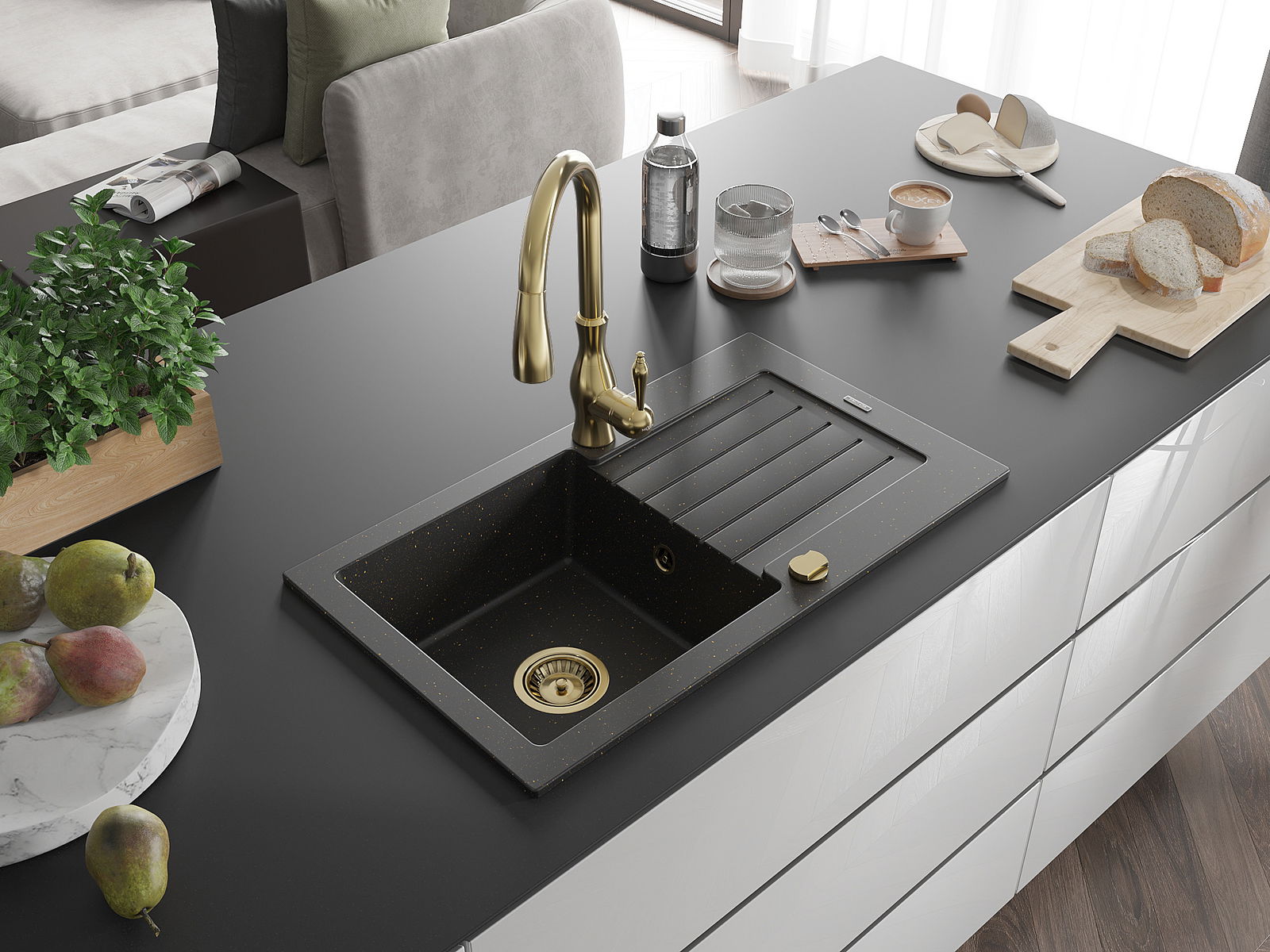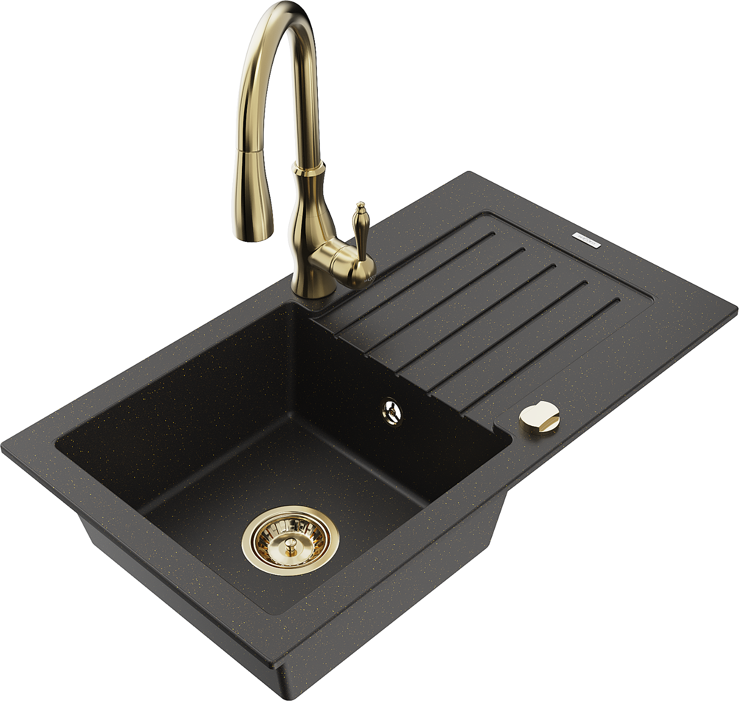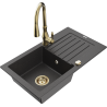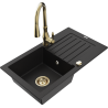 Mexen Pablo chiuvetă de granit cu 1 compartiment cu scurgător și baterie de bucătărie Savita, negru/auriu metalic