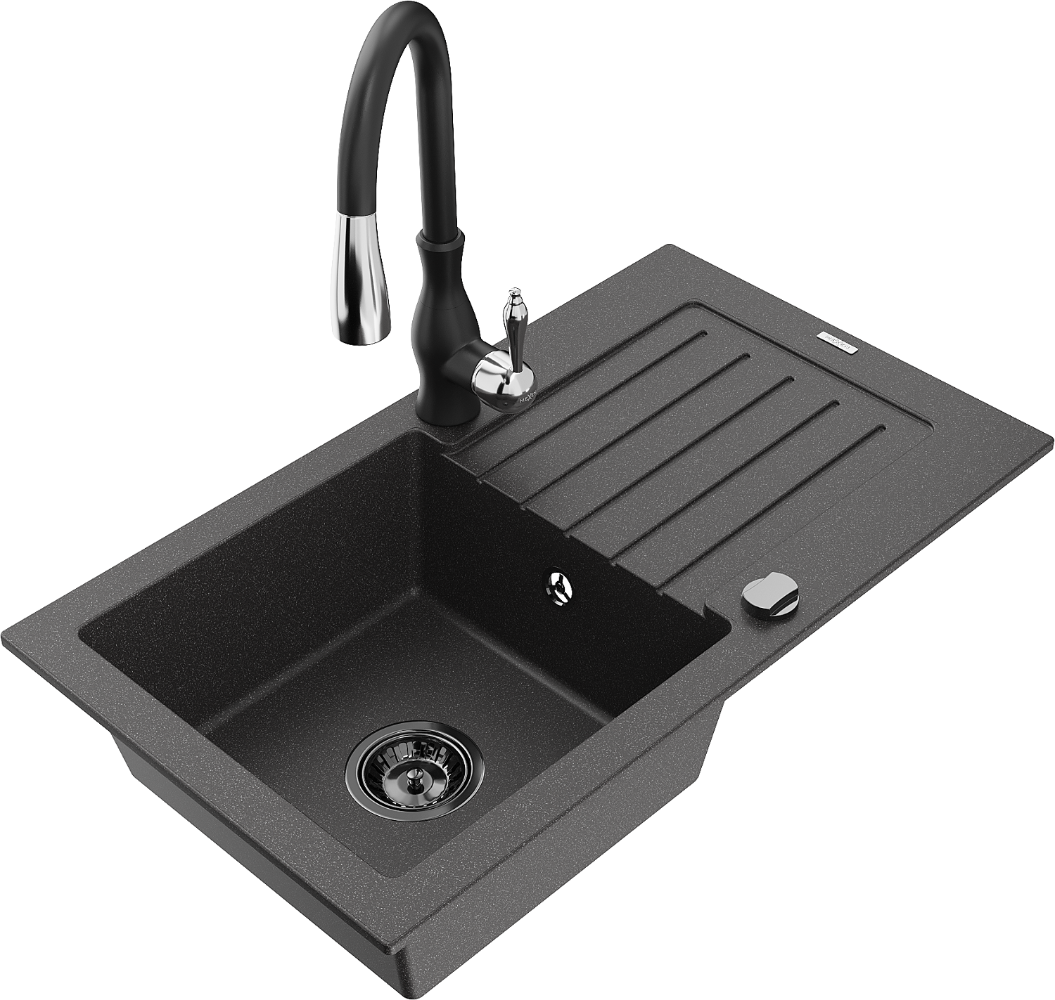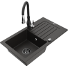 Mexen Pablo chiuvetă de granit cu o singură cuvă cu picurător și baterie de bucătărie Savita, negru cu pete