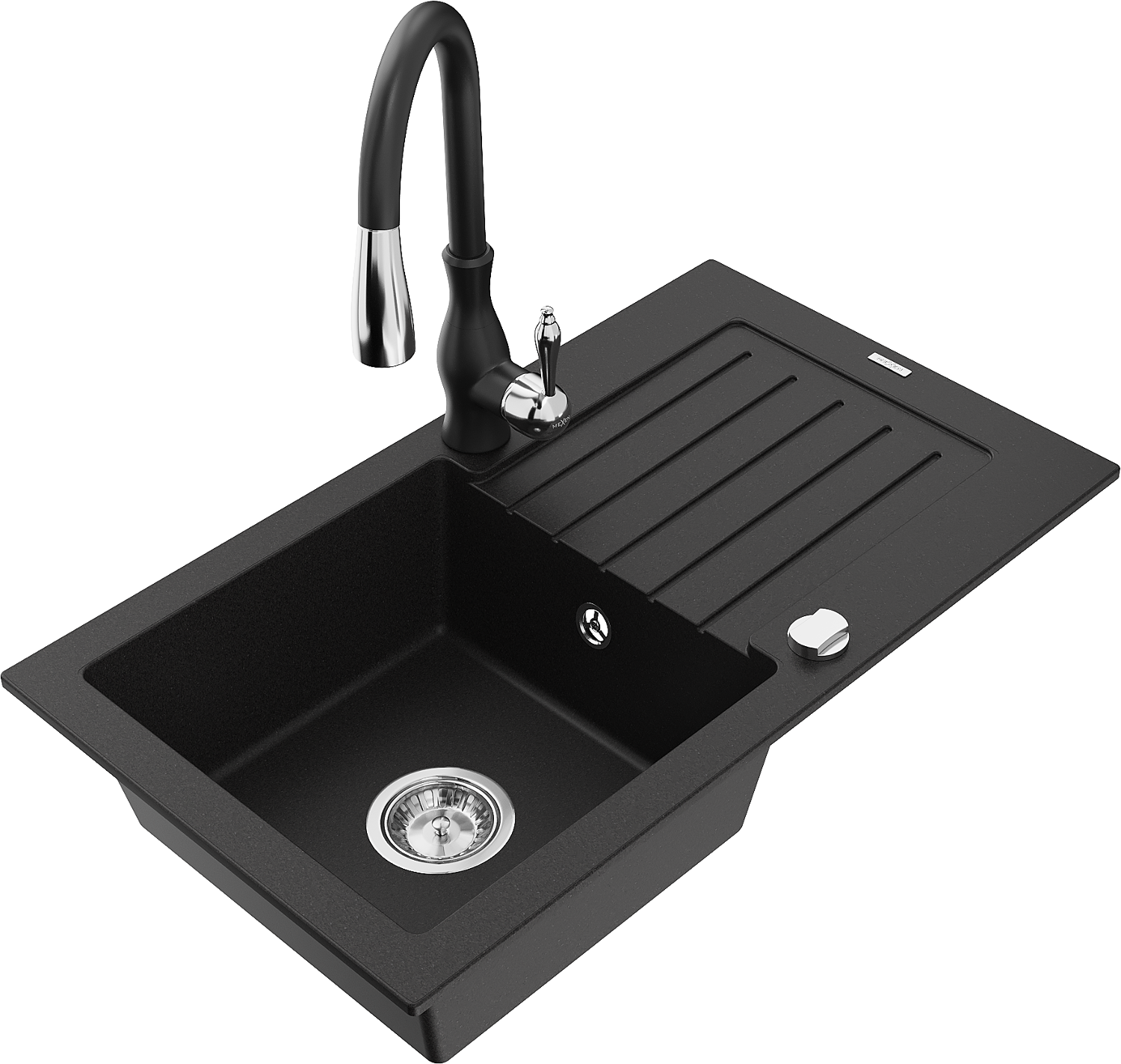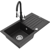 Mexen Pablo chiuvetă de bucătărie din granit cu 1 cuvă cu scurgător și baterie de bucătărie Savita, negru