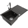 Mexen Cesar chiuvetă din granit cu 1 compartiment, cu scurgător și baterie de bucătărie Rita, gri - 6514-71-670300-00