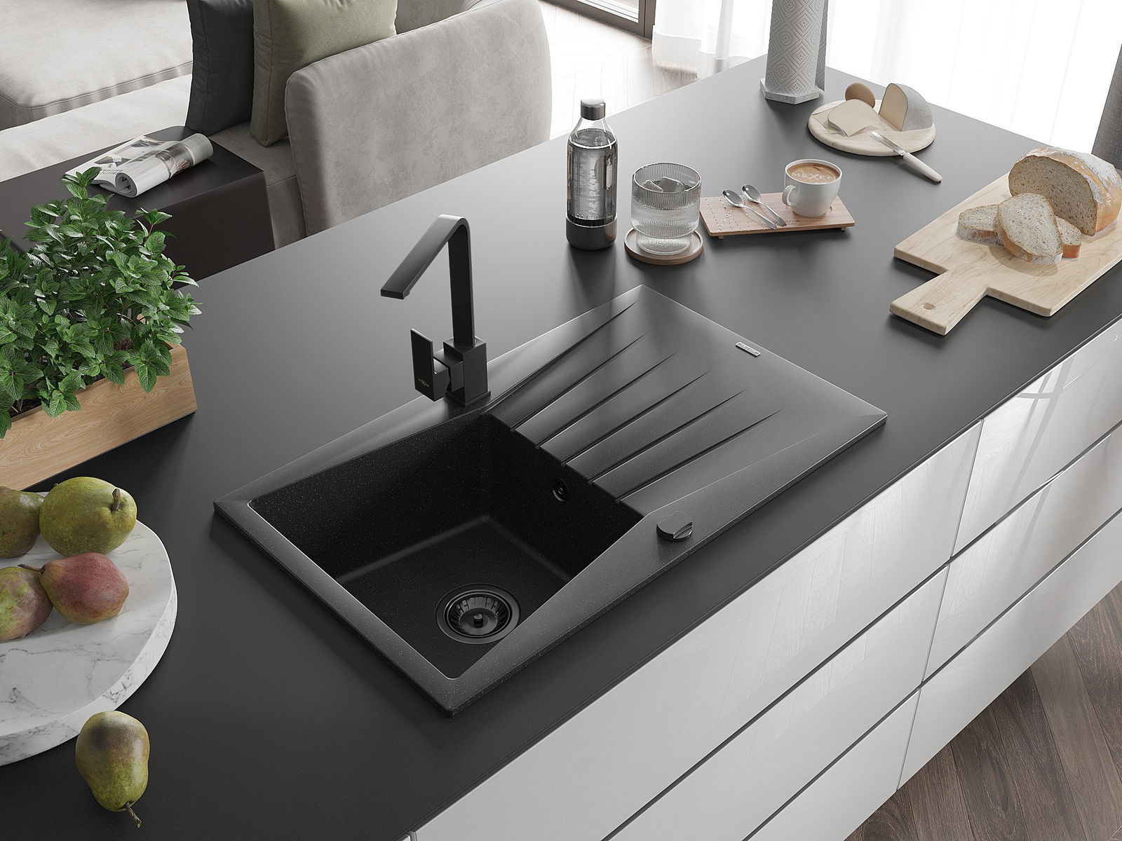 Suprafața chiuvetei este rezistentă la pete și decolorarea, datorită căreia este ușor de curățat și își păstrează culoarea mult timp. Estetică și practic completarea fiecărei bucătării.