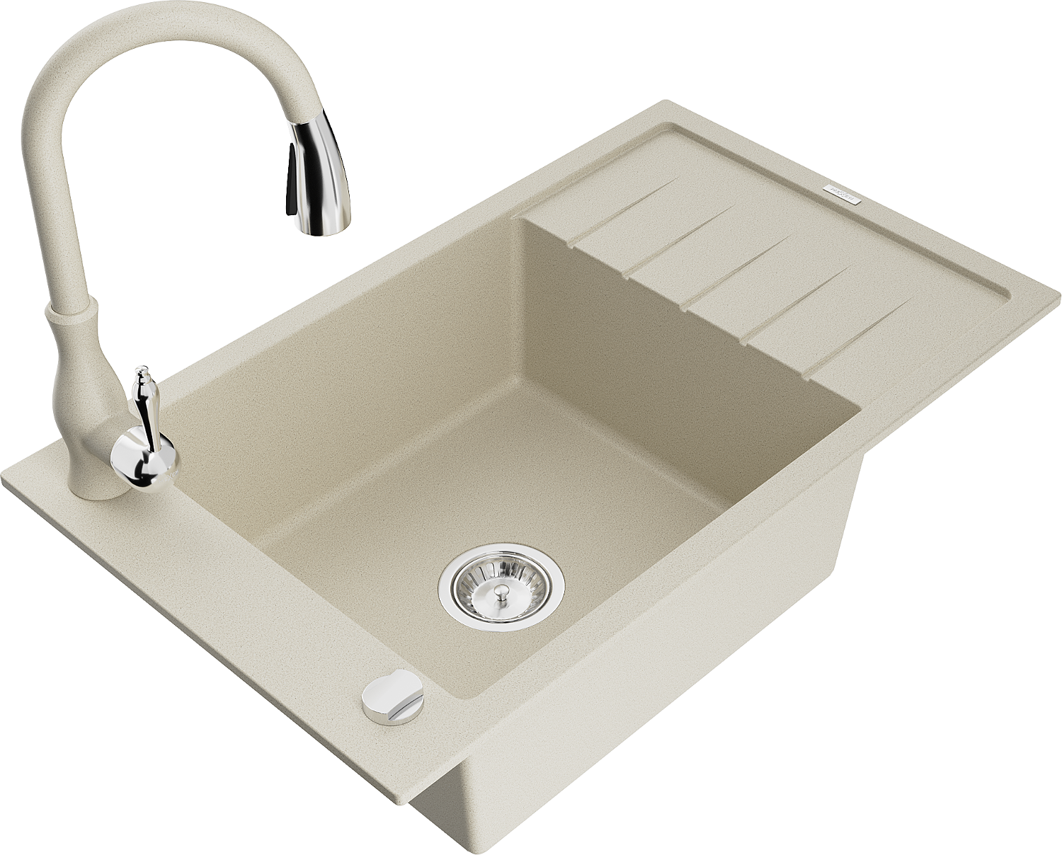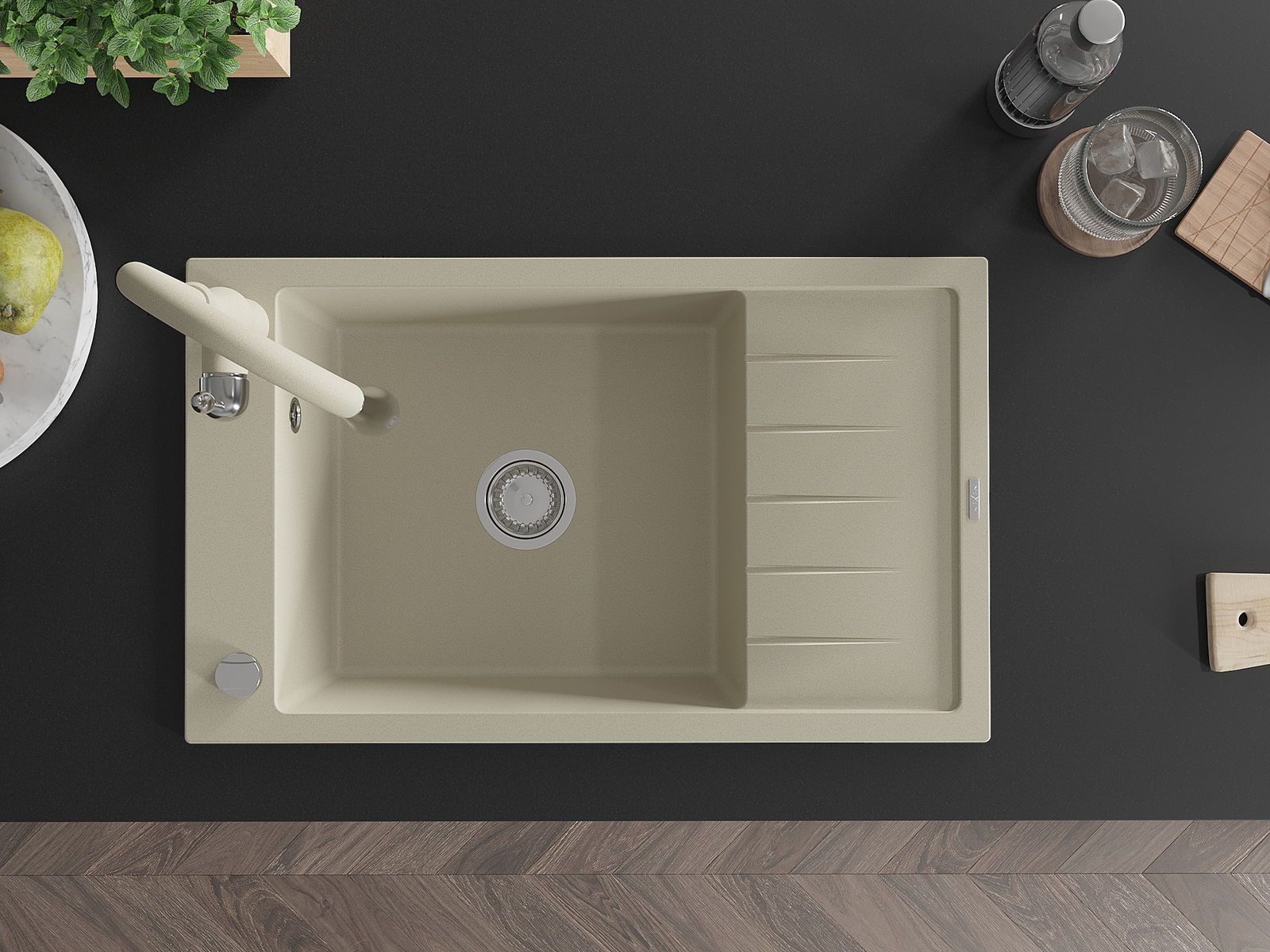 Mexen Elias chiuvetă de granit cu 1 compartiment și scurgător și baterie de bucătărie Savita, bej - 6511-69-672601-69