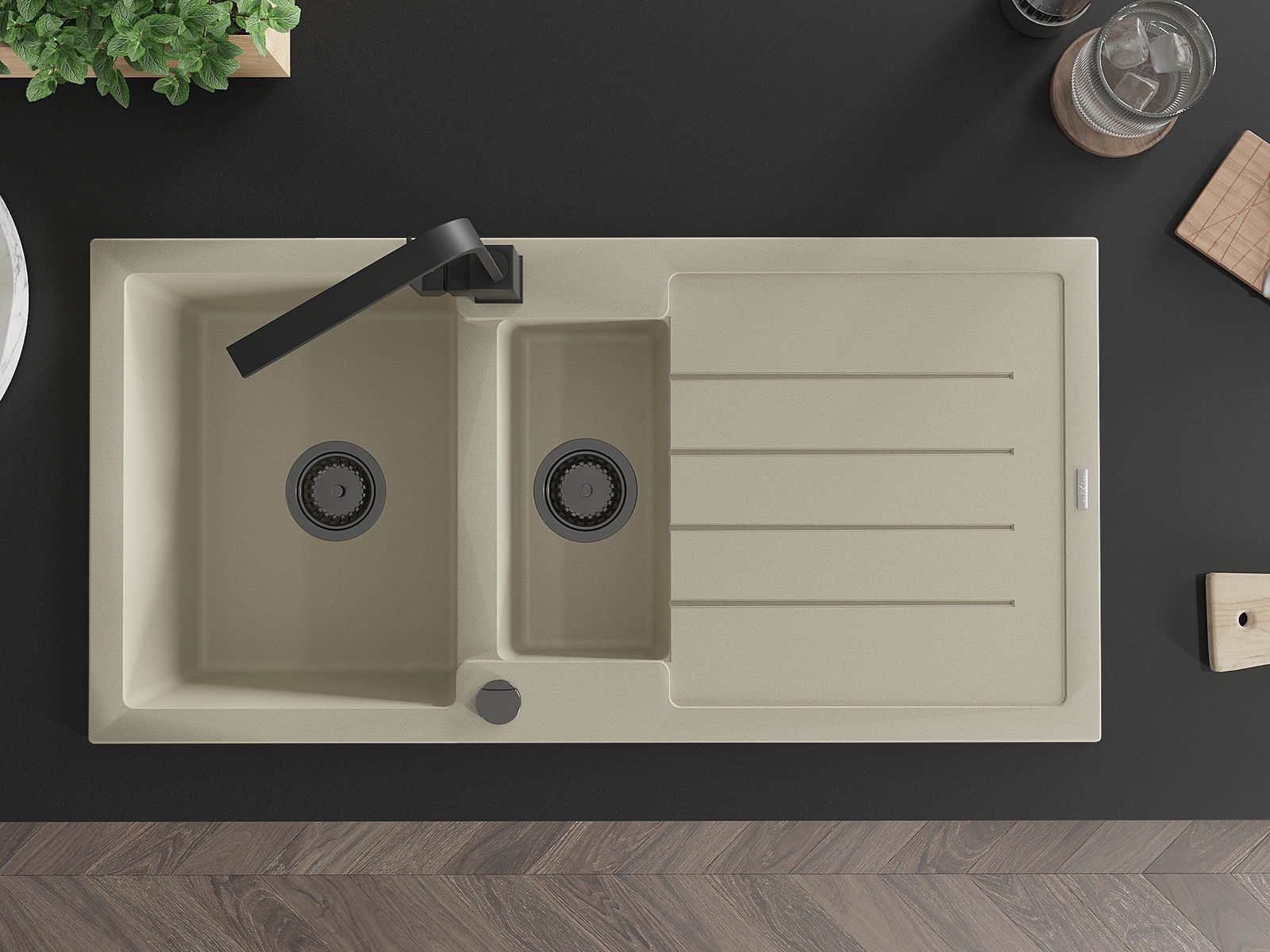 Suprafața chiuvetei este rezistentă la pete și decolorarea, datorită căreia este ușor de curățat și își păstrează culoarea mult timp. Estetică și practic completarea fiecărei bucătării.